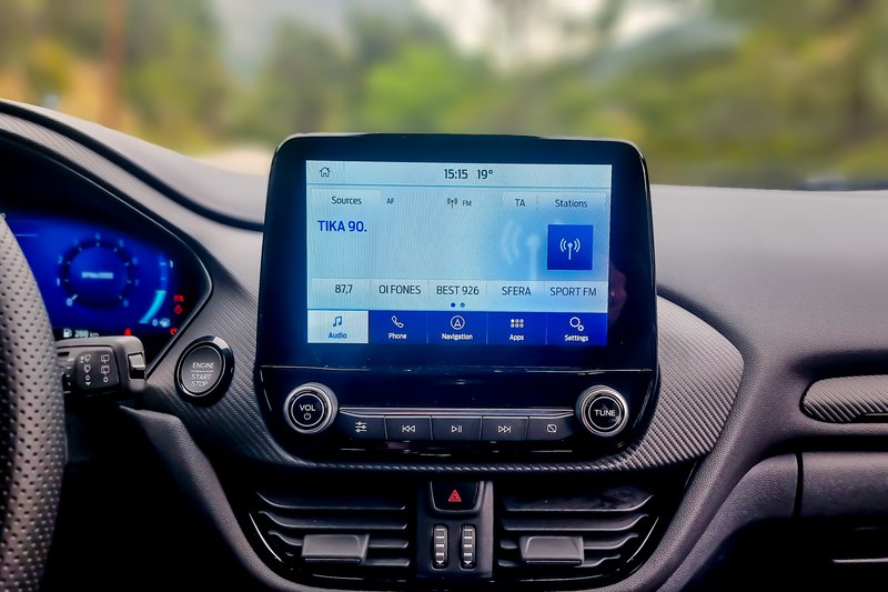 Και για να μη σου έρθει καμία απογοήτευση, μπαίνοντας στο Puma Vivid Ruby διαπιστώνεις, έπειτα από πολλή προσοχή, ότι περιλαμβάνει στοιχεία που εγγίζουν τα όρια του… Vignale. Εδώ, εννοείται ότι σε υποδέχεται πλήρης ψηφιακός πίνακας οργάνων 12,3”, οθόνη αφής 8” με σύστημα Ford SYNC 3 (Bluetooth, Voice Control, κλήση έκτακτης ανάγκης) και ενσωματωμένο modem, πλοήγηση, ηχοσύστημα B&O απόδοσης 675 W με αβίαστα καθαρό και δυνατό ήχο, 2 θύρες USB, αλλά και wireless charging για smartphone.