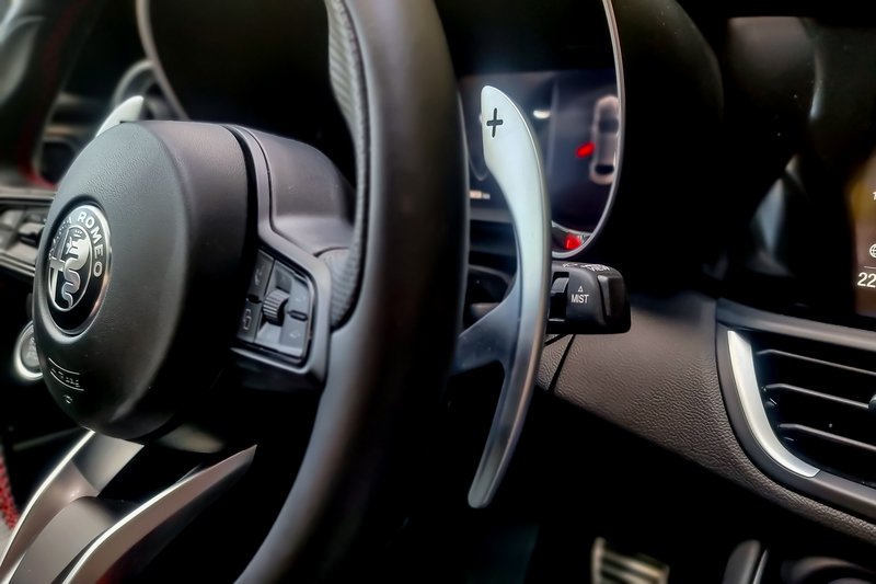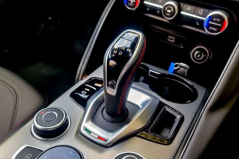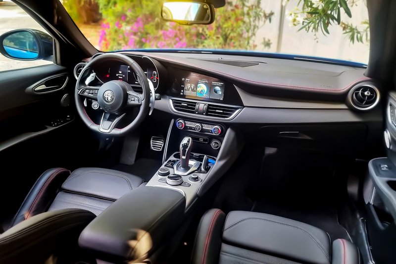 Το ίδιο αυτόματο κιβώτιο 8 σχέσεων της ZF που γνωρίζουμε, με τα θεσπέσια μεγάλα, σταθερά αλά Ferrari paddles βάζει τα άλογα στη θέση τους. Αν προτιμήσετε την επιλογή “manual” από τον κλασικό επιλογέα θα πάρετε και πολλούς ωραίους κόφτες στις 6.000 rpm, αν ξεχάσετε να κάνετε τις αλλαγές στην ώρα τους (αχ, να είχε και λεντάκια για ιδανικές αλλαγές!), αλλά κάποια κατεβάσματα τα αρνείται. Οι ψηλοί διαμαρτύρονται για τους πίσω χώρους. Το προσπερνάμε κι αυτό. Η Giulia έχει μέσα της εγωισμό.