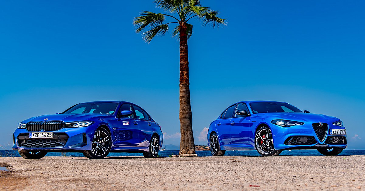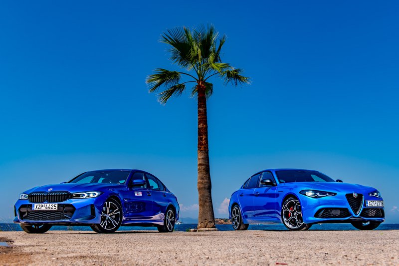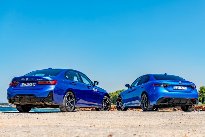 Άλλο που δεν θέλαμε, λοιπόν, να τους δούμε όλους στα μάτια, να φέρουμε τα δύο τούτα μπλε κοσμήματα, το καθένα με την ιστορία του, τη δυναμική του, την τεχνολογία του, τη φιλοσοφία και τον χαρακτήρα του ενώπιος ενωπίω. H Giulia, γνήσια βενζινοκίνητη με 280 τετρακίνητους PS, η BMW 330e, plug-in πισωκίνητη με 292 PS. Πάμε να περάσουμε καλά κι εμείς, όπως κι εσείς.