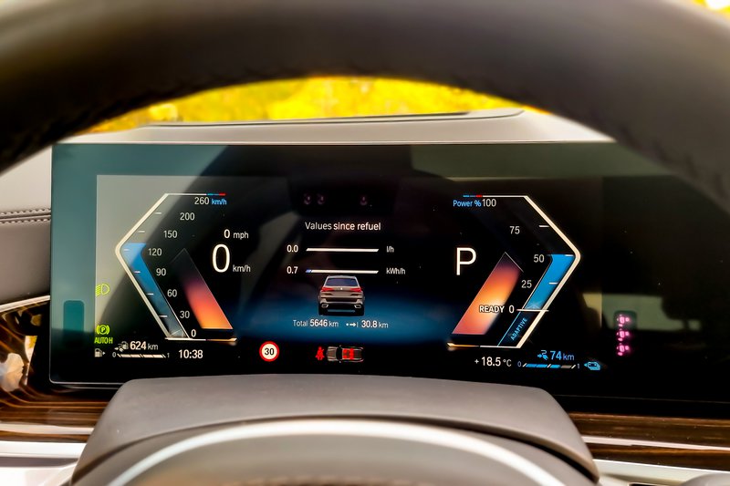 Στην ανανεωμένη Χ5 βρίσκει εφαρμογή η κυρτή οθόνη BMW Curved Display που αποτελείται από μια οθόνη 12,3" για τον πίνακα των οργάνων και μια μεγαλύτερη 14,9" (touch) για το infotainment που προσφέρει πρόσβαση και μέσω φυσικού περιστροφικού διακόπτη στη βάση της κεντρικής κονσόλας, όπου και βρίσκονται οι διακόπτες παραμετροποίησης προγραμμάτων οδήγησης (Sport, Hybrid, Electric) και της ρύθμισης του ύψους της αερανάρτησης.