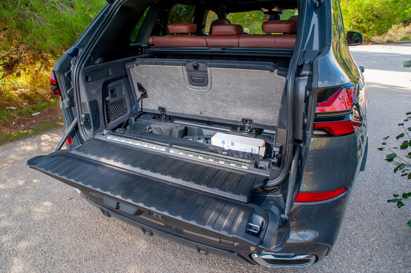 Να σημειωθεί πως η πόρτα των αποσκευών είναι διαιρούμενη ώστε να βελτιώνεται η φορτοεκφόρτωση αποσκευών, ενώ μέσω ενός διακόπτη μπορεί να μειωθεί και το ύψος του δαπέδου, ελέω αερανάρτησης, κάτι που βρήκαμε πολύ πρακτικό. Σε ό,τι αφορά τη χωρητικότητα η ύπαρξη μπαταρίας τον έχει περιορίσει στα 500 L, ακόμη και έτσι είναι επαρκέστατος και πλήρως εκμεταλλεύσιμος, ενώ μπορεί να φθάσει τα 1.720 L με την αναδίπλωση της πίσω σειράς, χωρητικότητα στα επίπεδα ενός φορτηγού!