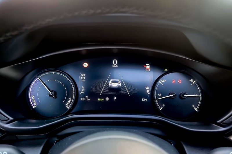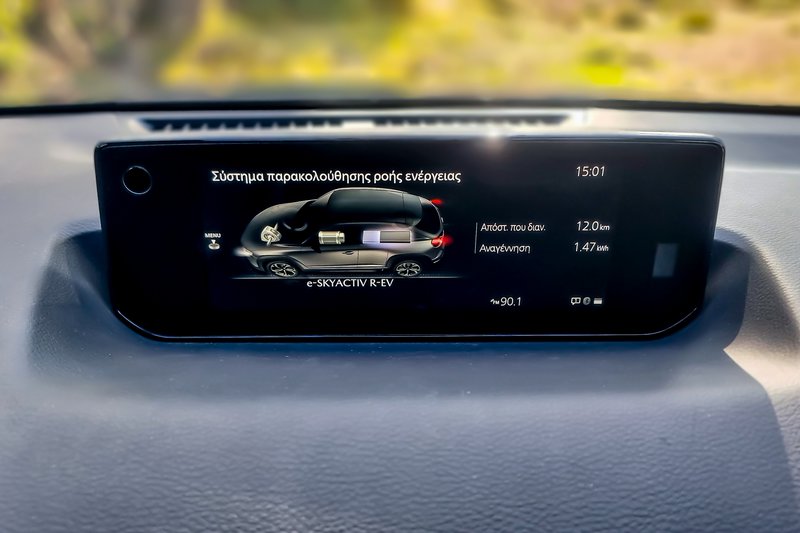 Η υβριδική λειτουργία δεν επιτρέπει να κινηθεί το αυτοκίνητο πάνω από 135 km/h ενώ η αμιγώς ηλεκτρική ταχύτητα αγγίζει τα 140 km/h. Η κατανάλωση βενζίνης μπορεί να κυμανθεί από 0,0 L/100 km τη στιγμή που η ηλεκτρική κατανάλωση άγγιξε τα 22,2 kWh/100 km (17,5 υποστηρίζει η Mazda) ενώ τις ημέρες δοκιμής μας και με την επιλογή Normal είδαμε εντέλει κατανάλωση βενζίνης στα 6,4 L/100 km. Υπενθυμίζουμε ότι αυτοσκοπός δεν είναι να φουλάρουμε με οκτάνια αλλά με ηλεκτρόνια και να έχουμε το καύσιμο για… αποταμίευση.