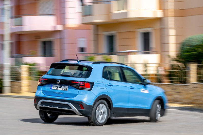Τα περισσότερα λοιπά στοιχεία όπως τα πάνελ και το Virtual Cockpit δεν έχουν αλλάξει θυμίζοντας όμως περισσότερο το μεγαλύτερο T-Roc αν και το εργονομικό… πισωγύρισμα αφορά στην υιοθέτηση επιφανειών αφής για τη ρύθμιση θερμοκρασίας του κλιματισμού (με λειτουργία καθαρισμού του αέρα και αντιαλλεργικό φίλτρο, βεβαίως, βεβαίως), αλλά –ευτυχώς- όχι και των ρυθμιστικών ήχου που επιμένει στην περιστροφική λειτουργία του παλιού T-Cross. Εξοπλιστικά συναντάμε στάνταρ Dynamic Road Sign Display και αισθητήρες στάθμευσης εμπρός-πίσω, κάμερα οπισθοπορείας, ασύρματη φόρτιση κινητού, 4 θύρες USB-C αλλά και πολλές πολλές ευκολίες και ανέσεις. Front Assist (Σύστημα επιτήρησης περιβάλλοντος χώρου) με City Emergency Braking (Σύστημα φρεναρίσματος έκτακτης ανάγκης), Hill Start Assist (Σύστημα υποβοήθησης κ ατά την εκκίνηση σε ανηφόρα), Lane Assist (Ενεργό σύστημα διατήρησης λωρίδας κυκλοφορίας), ηλεκτρικά αναδιπλούμενοι, ρυθμιζόμενοι και θερμαινόμενοι εξωτερικοί καθρέπτες με αυτόματη ρύθμιση καθρέπτη συνοδηγού. Όλα εξαιρετικά πρακτικά για την καθημερινότητά μας.
