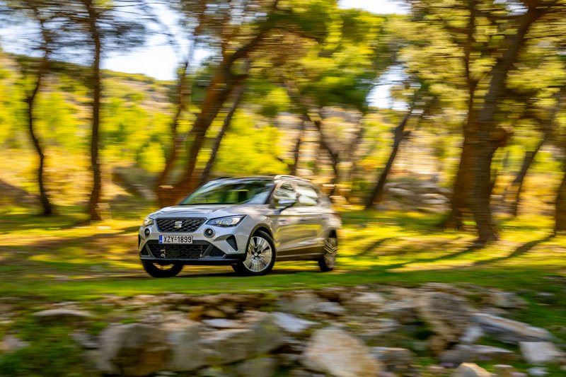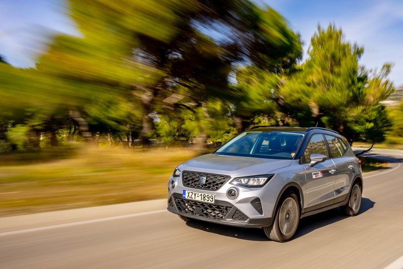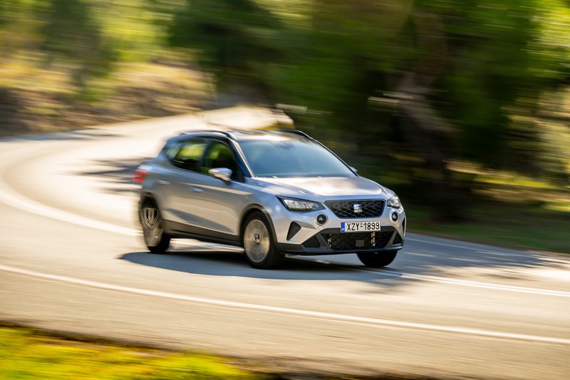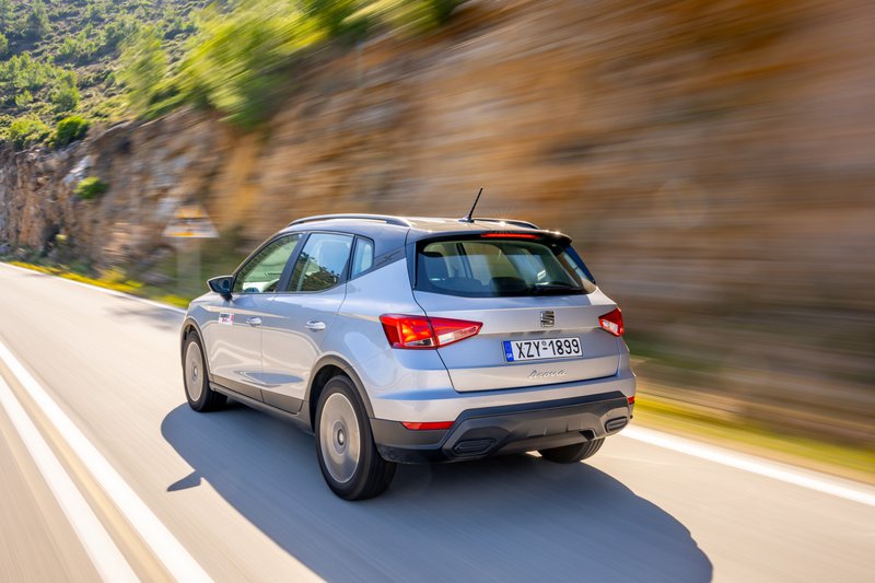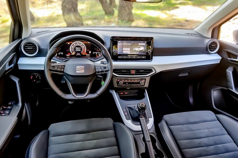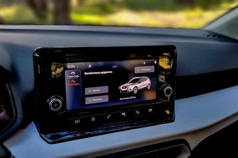Tην ίδια εικόνα εισπράττεις και στο εσωτερικό, όπου η σχεδίαση του Arona θυμίζει ένα κανονικό επιβατικό όχημα της SEAT και όχι κάποιο SUV καθόσον η σχεδίαση είναι… Ibiza. Τα μαλακά πλαστικά, οι ψηφιακές οθόνες και η πληθώρα ρυθμίσεων δείχνει το σήμερα με ελληνικά μενού αλλά και πολύ μικρές γραμματοσειρές με τις οποίες οι πρεσβύωπες δε θα χαρούν. Οι χώροι είναι συνολικά πρακτικοί και η αίσθηση μοντέρνα.