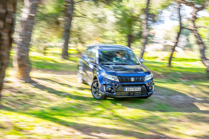 Από την άλλη, το Vitara όπως έχουμε δει και στο παρελθόν είναι διασκεδαστικό (βοηθά και η δύναμή του) ενώ και στο χώμα μπορεί να χειριστεί τις κακοτοπιές με το ανάλογο… σέβας απέναντι στους επιβάτες του αλλά συνάμα είναι πιο… τριζάτο σε μια λακκούβα ή ένα σαμαράκι.