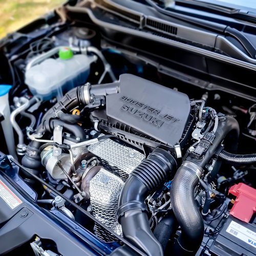 Στα μηχανολογικά, οι Ισπανοί δανείστηκαν το 1000άρι, τρικύλινδρο turbo μοτέρ TSI του ομίλου που εδώ αποδίδει 110 PS και 200 Nm ροπής σε ένα εύρος μεταξύ 2.000 και 3.000 rpm. Με ένα σαφές σε αίσθηση 6άρι κιβώτιο που όμως πνίγει το γρήγορο τέμπο προσφέρει ένα 0-100 km/h σε 10,6 sec, τελική στα 190 km/h ενώ η κατανάλωση δε μένει χαμηλά σε ένα νούμερο στα 8,5 L/100 km. Από την άλλη, οι Ιάπωνες φέρνουν ό,τι πιο εκλεκτό σε Mild hybrid τεχνολογία με ένα τετρακύλινδρο 14000άρι turbo μοτέρ απόδοσης 129 PS και ροπής στα 235 Nm που επίσης αποδίδεται μεταξύ 2.000 και 3.000 rpm. Όμως η Suzuki φόρεσε και έναν ηλεκτροκινητήρα 14 PS και 53 Nm που βοηθά το σύνολο να αποδώσει πιο πολύ, πιο άμεσα και καίγοντας λίγα. Απόδειξη; 0-100 km/h σε 9,5 sec, τελική στα 190 km/h και μέση κατανάλωση στα 6,9 L/100 km με 6άρι μηχανικό κιβώτιο.