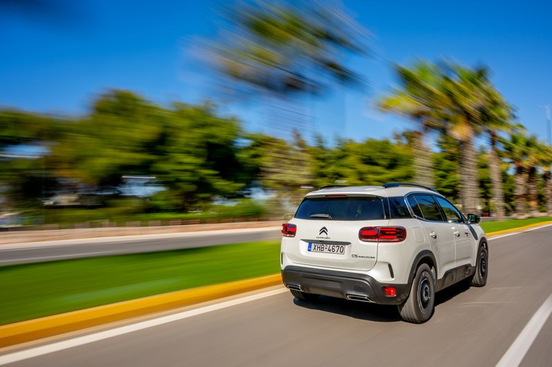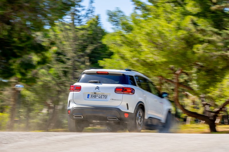 Σε αμιγώς ηλεκτρική κίνηση ο συριγμός του μοτέρ θυμίζει… τρόλεϋ σε μικρογραφία και όταν μπει σε λειτουργία και ο κινητήρας βενζίνης θα ακουστεί συνδυασμός των δύο κόσμων, αλλά σε διόλου ενοχλητικές ποσότητες. Ενίοτε θα ακουστούν και οι αλλαγές ταχυτήτων, αλλά αυτό είναι κάτι που μπορεί να ακούγεται σε πολλά διπλοσύμπλεκτα κιβώτια. Η άνεση είναι απίθανα προσεγμένη και μόνον μερικές φορές οι ταλαντώσεις σε κυματισμούς θα θυμίσουν ότι τούτο το αυτοκίνητο ούτε μικρό είναι ούτε γεννημένο για πίστες, αλλά για εκδρομές. Συνολικά, εδώ η αίσθηση του αυτοκινήτου παραμένει ανόθευτα γαλλική, με το C5 Aircross Hybrid 136 ë-DCS6 να διατηρεί στο ακέραιο την άνεση και τα χαρακτηριστικά που γνωρίσαμε έχοντας ως συμμάχους την ανάρτηση με τα αμορτισέρ με υδραυλικά bump stops και τα χορταστικά και άνετα καθίσματα, αλλά και τα στάνταρ ηχομονωτικά μπροστινά πλαϊνά κρύσταλλα.