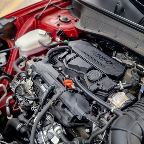 Χίλια εξακόσια τετρακύλινδρα, τουρμπίσια κυβικά που αποδίδουν 198 PS στις 6.000 rpm, χωρίς ίχνος υβριδικής τεχνολογίας, αλλά ούτε και την επαναστατική τεχνολογία CVVD - Continuously Variable Valve Duration (θυμίζουμε: αποτελεί προίκα των 1000ριών μοτέρ της Hyundai με σύστημα μεταβλητού χρονισμού και βύθισης των βαλβίδων). Εδώ έχουμε απλό σύστημα μεταβλητού χρονισμού όλων των βαλβίδων (CVVT) κι αυτό είναι ένα ακόμα σημάδι παλιάς, petrolhead συνταγής. H ροπή, από την άλλη, αγγίζει τα 265 Nm από τις 1.600 μέχρι τις 4.500 rpm και περνάει στους εμπρός τροχούς με ένα 6άρι μηχανικό κιβώτιο, και ούτε καν το ρομποτικό iMT, αλλά το απλό, κανονικό.
