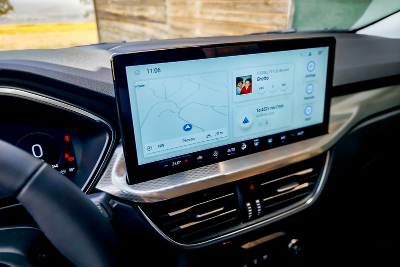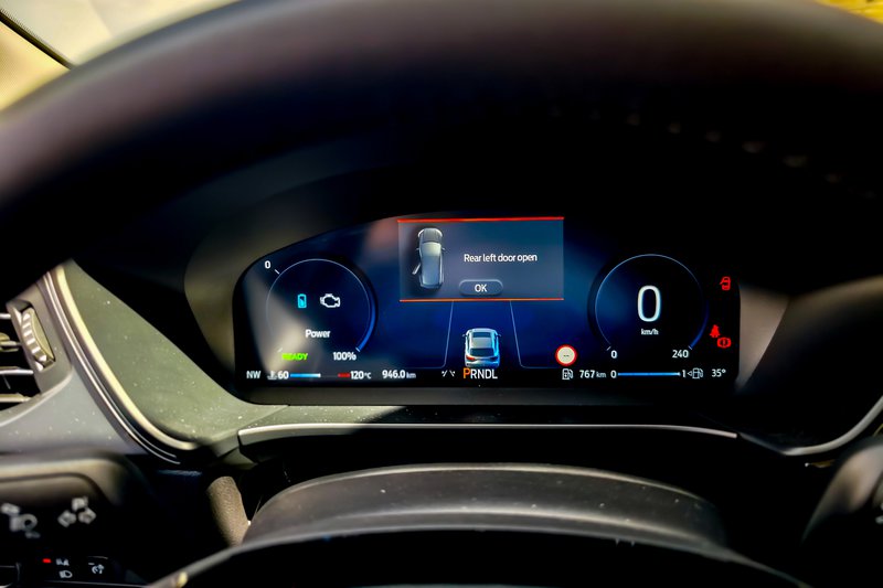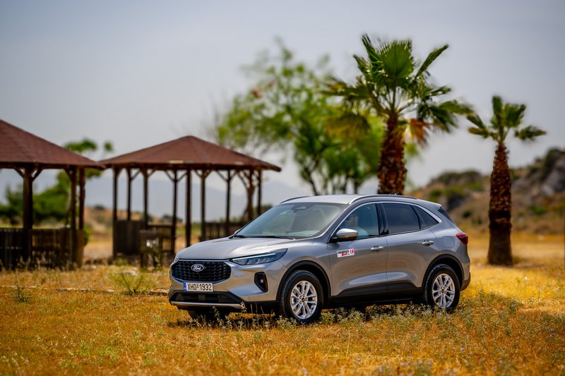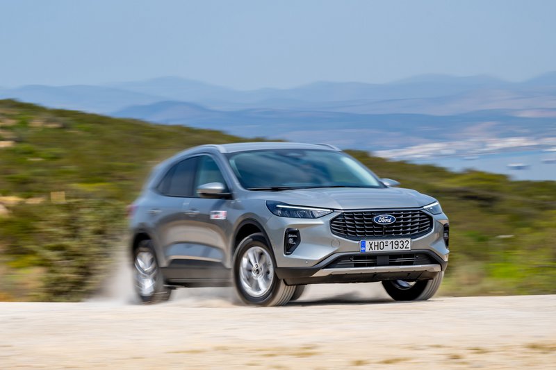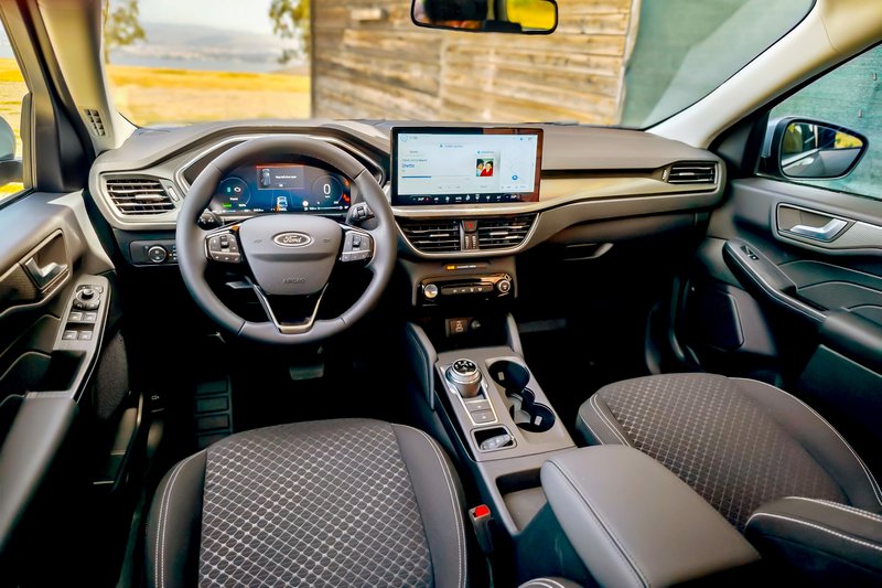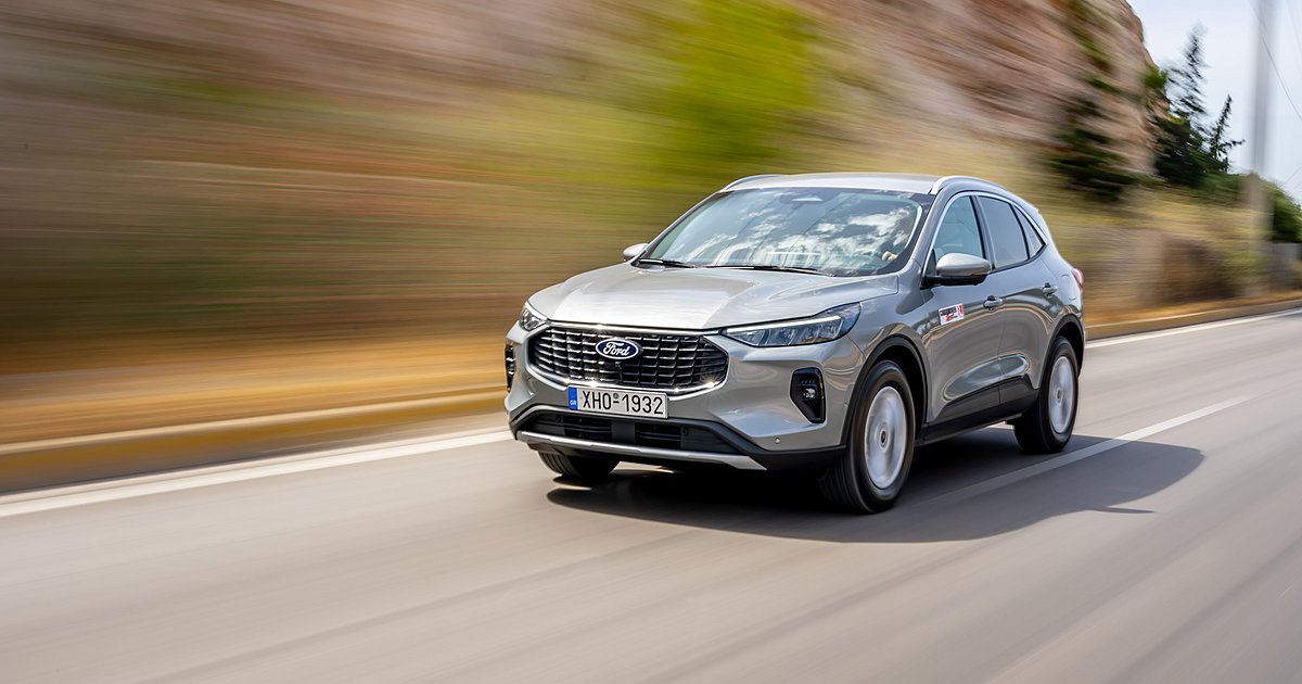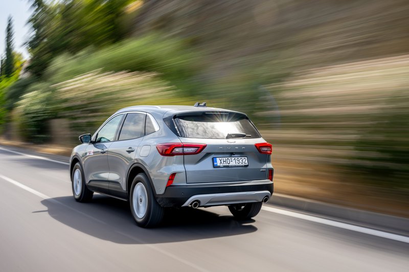 Το νέο (αν θέλετε, βάζετε εισαγωγικά) Ford Kuga FHEV διαθέτει πλέον δυναμική σχεδίαση, ενώ, όπως ισχύει και με άλλα μοντέλα της Ford, αυτή διαφοροποιείται ανάλογα με την έκδοση. Στην έκδοση δοκιμής μας, Titanium, ξεχωρίζουν τα κάθετα στοιχεία στη μάσκα, οι οριζόντιες μπάρες στο κάτω μέρος και τα λεπτά φώτα ομίχλης, ενώ έντονη είναι η παρουσία χρωμίου. Εννοείται ότι έχουμε φώτα LED, ενώ υπάρχει και μια φωτεινή λεντοταινία που συνδέει τα εμπρός φώτα (έχουμε δει το τρυκ σε αρκετά πλέον μοντέλα). Νέος διαχύτης πίσω, νέα φωτιστικά και νέες ζάντες και… voilà! To εσωτερικό, ομοίως, μας είναι γνώριμο και φιλόξενο όντας τεράστιο, πρακτικό (με συρόμενα κατά 15 cm και διαιρούμενα πίσω καθίσματα) και 536 L πορτμπαγκάζ, αλλά έχουν μπει κι εδώ hi-tech πινελιές, όπως η μεγάλη κεντρική οθόνη αφής 13,2”, ο ατμοσφαιρικός φωτισμός και το νέο SYNC 4, με καλή αίσθηση στα συστήματα, το οποίο προσφέρει δυνατότητα over-the-air ενημερώσεων και ασύρματης ενσωμάτωσης Apple Car Play και Android Auto χρησιμοποιώντας διπλάσια υπολογιστική ισχύ σε σχέση με το σύστημα SYNC 3 του απερχόμενου Kuga και διαθέτει έναν εξελιγμένο αλγόριθμο μηχανικής μάθησης.