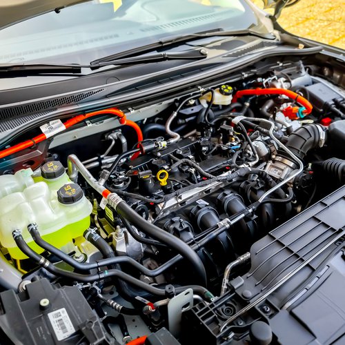 Το Ford Kuga FHEV έχει περίπου το ίδιο σύστημα κίνησης όπως αυτό που γνωρίσαμε στην plug-in έκδοσή του πριν λίγα χρόνια, αλλά, εδώ, εφοδιάζεται με ένα αυτοφορτιζόμενο υβριδικό σύστημα κίνησης με δυνατότητα αμιγούς ηλεκτροκίνησης, το οποίο δεν απαιτεί φόρτιση από εξωτερική πηγή παροχής ενέργειας, καθώς η φόρτιση της μπαταρίας γίνεται μέσω της αναγεννητικής πέδησης και της λειτουργίας του βενζινοκινητήρα. Ο οποίος είναι τετρακύλινδρος σε σειρά ατμοσφαιρικός, είναι –ακόμα- 2,5 L, διαθέτει σύστημα μεταβλητού χρονισμού και λειτουργεί σε κύκλο Atkinson, συνεργαζόμενος με έναν μεγαλύτερο, σε σχέση με το παρελθόν, τριφασικό, υδρόψυκτο ηλεκτροκινητήρα μόνιμου μαγνήτη απόδοσης 125 PS (!), μία γεννήτρια, ένα βελτιωμένο από τη Ford power-split κιβώτιο ταχυτήτων eCVT, και μια συμπαγή, υγρόψυκτη μπαταρία ιόντων λιθίου με χωρητικότητα 1,1 kWh.