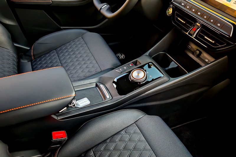 Το τιμόνι είναι flat top και bottom και είναι πολυλειτουργικό, όπως το έχουμε δει και στο MG4, με δύο μικρά joysticks για τις πολλές λειτουργίες χειρισμού. Η κεντρική οθόνη αφής 10,25” περιλαμβάνει τις γνωστές μας σουίτες της MG σε νέο περιβάλλον σε ελληνικά, ενώ διακόπτες σαν πλήκτρα πιάνου βρίσκονται ακριβώς από κάτω για γρήγορη πρόσβαση στις λειτουργίες που χρησιμοποιούνται συνήθως. Η δε κεντρική κονσόλα φιλοξενεί τα χειριστήρια για το ηλεκτρικό χειρόφρενο, τα drive modes και τον επιλογέα ταχυτήτων. Άλλο κοινό στοιχείο με τα υπόλοιπα MG είναι ο ψηφιακός πίνακας οργάνων 7”, όπως και οι πολλές ευκολίες ανέσεων (μέχρι και αεραγωγοί για τους πίσω επιβάτες υπάρχουν), αλλά και το διάσημο MG Pilot με 11 συνολικά συστήματα με τα οποία το αυτοκίνητο εξοπλίζεται. Και, τέλος, αυτή η αίσθηση άνεσης και ευρυχωρίας με την οποία κάθονται άνετα εμπρός και πίσω μέχρι πέντε επιβάτες, ενώ υπάρχουν χώροι για πολλά μικροαντικείμενα κι ένα τίμιο πορτμπαγκάζ στα 293 L. Τι λείπει; Νυκτερινός ambient φωτισμός στα σκοτεινά σημεία της καμπίνας και λίγο μεγαλύτερες ενδείξεις στον μικρό πίνακα οργάνων.