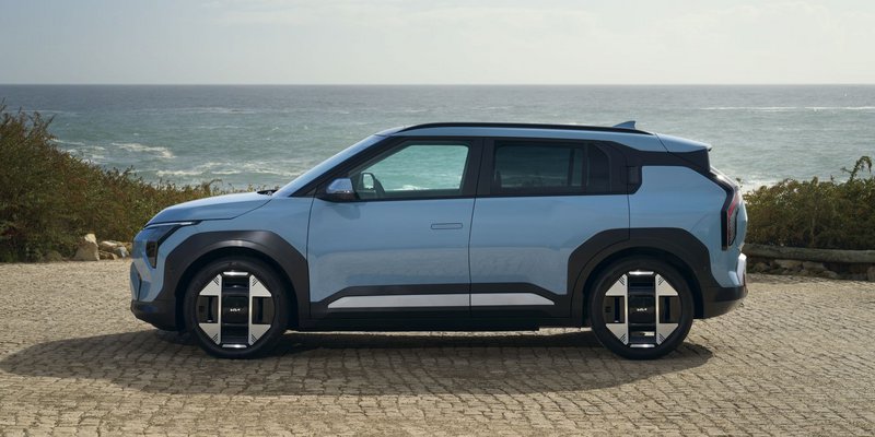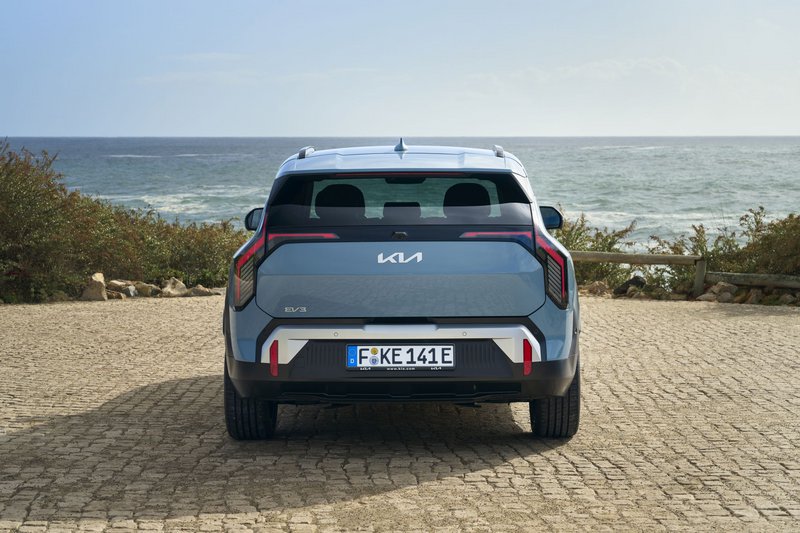 Στο προφίλ το μάτι πέφτει στην φαρδιά κολώνα C που θυμίζει κάτι από Suzuki Ignis, στους αεροδυναμικής σχεδίασης τροχούς που ξεκινούν από τις 17 ίντσες και φτάνουν μέχρι τις 19, αλλά και στις αναδυόμενες λαβές των μπροστινών θυρών. Η απόσταση από το έδαφος δεν είναι τόσο μεγάλη όσο σε άλλες προτάσεις (160mm) ωστόσο οι άνθρωποι της KIA τονίζουν ότι όλα έχουν υπολογιστεί ώστε το EV3 να έχει τον κορυφαίο δυνατό αεροδυναμικό συντελεστή (0.263 Cd), μεγιστοποιώντας την αποδοτικότητα, στην οποία θα αναφερθούμε εκτενώς παρακάτω.