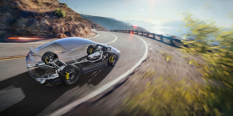 Στάνταρ τοποθετείται σύστημα πέδησης με σταθερές 6πίστονες δαγκάνες εμπρός χρώματος μπρονζέ μπροστά και πλευστές μονοπίστονες δαγκάνες πίσω. Τα δισκόφρενα είναι φτιαγμένα από carbon ceramic και έχουν διαστάσεις 420x40 mm εμπρός και 380x32 mm πίσω. Οι ζάντες 21” είναι σφυρήλατες και φιλοξενούν ελαστικά Michelin Pilot Sport 4 S 275/35-R21 εμπρός και 315/30-R21 πίσω. Επιπλέον, υπάρχει και ενεργητική τετραδιεύθυνση.