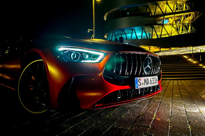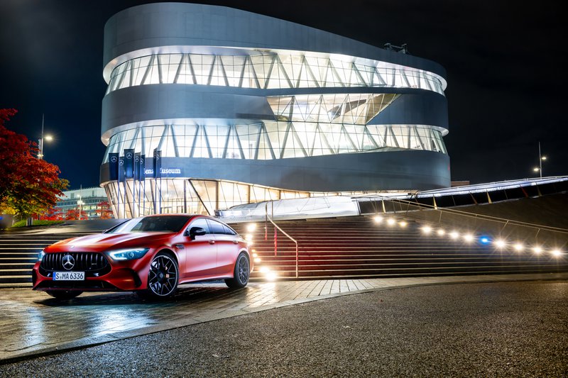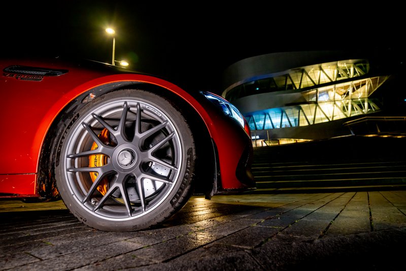 Το επόμενο βράδυ πήγαμε στο Μουσείο της Μερσέντες για τη νυχτερινή φωτογράφιση που βλέπετε. Ένα κτίριο σαν κιβωτός που θέλει να διατηρήσει όλα τα είδη που πέρασαν από τη φίρμα με το αστέρι, κι έπιασα τον εαυτό μου να ζητάει συγχώρεση για τις ανομίες μου. Επί ματαίω... Ποιες είναι ανομίες; Μήπως ότι έβαλα Track mode και Race mode και ξύπνησα την πλάση ολάκερη με τα σκασίματα από τις πελώριες εξατμίσεις; Ή, μήπως, όταν με το σύστημα ελέγχου πρόσφυσης απενεργοποιημένο μάζευα μοίρες υπερστροφής στο ζεμπίλι τού τρόμου; Σίγουρα όταν η βίαιη επιτάχυνση που ξεπερνούσε το ένα g γινόταν βίαιη επιβράδυνση. Μπα, ούτε αυτό. Μάλλον η αμαρτία ήταν ότι πόθησα τούτο το αυτοκίνητο!