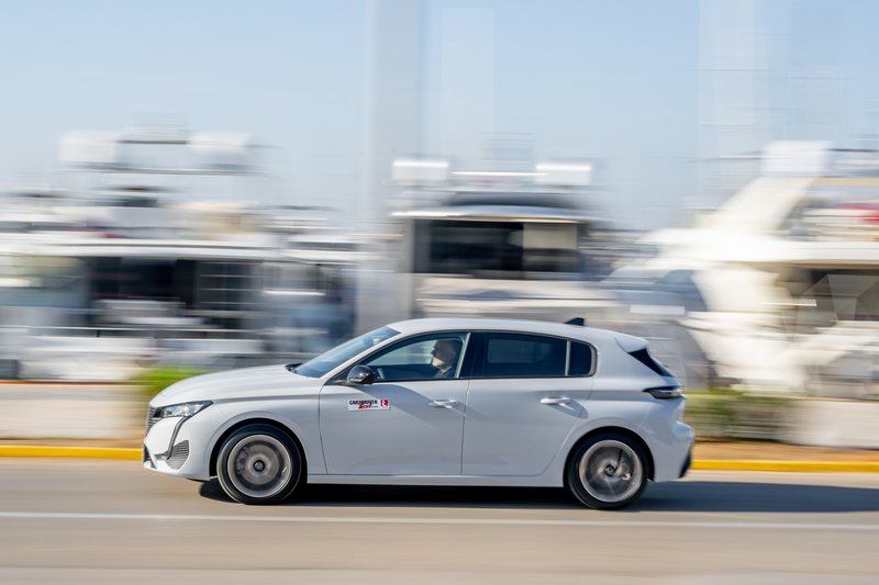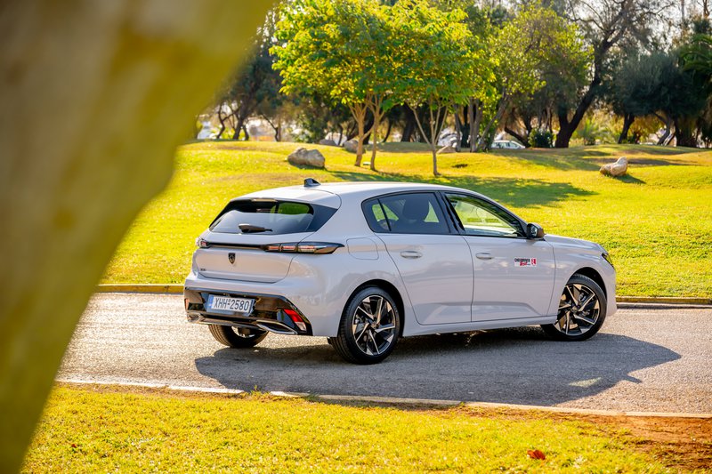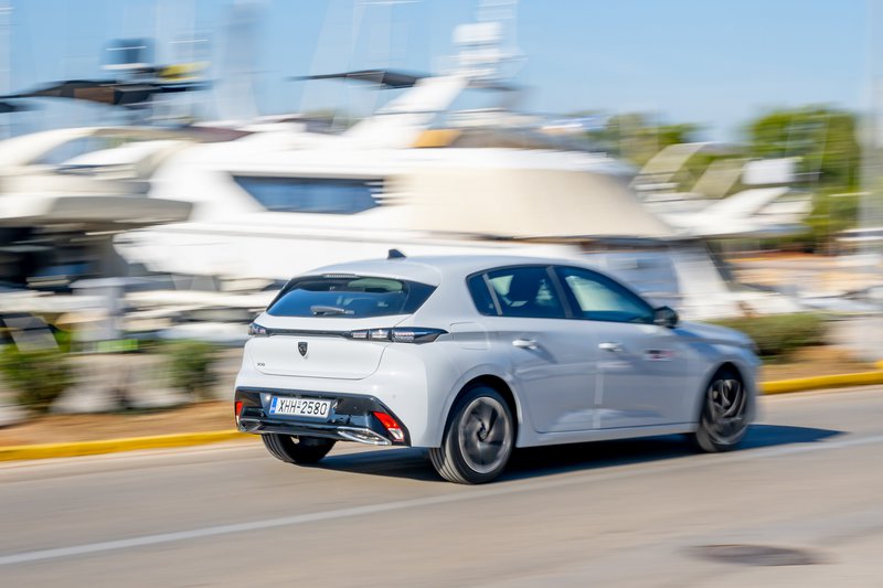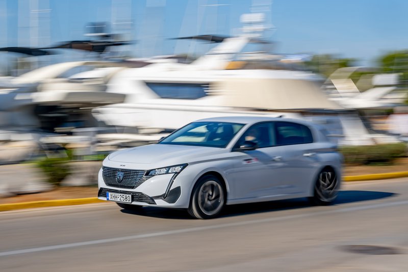 Η καλαίσθητη σιλουέτα του Peugeot 308 δε χρειάζεται συστάσεις σε ό,τι αφορά ούτε το ειδικό βάρος της φίρμας, ούτε την αίσθηση που προκαλεί σταματημένο ή εν κινήσει. Σικάτο με πολύ καλή άνεση στα κύρια χαρακτηριστικά του προσφέρει ποιότητα, τεχνολογίες, ασφάλεια και ένα πολύ εξωστρεφές περιβάλλον για τους επιβάτες με καλή πρακτικότητα και χωροταξία και τον οδηγό –αν και με λίγο εργονομικό…λόξιγκα- με το μικρό πεπλατυσμένο τιμόνι και το ανανεωμένο i-Cockpit με ελληνικά μενού με μέτρια όμως αναγνωσιμότητα. Τούτο το 308 όμως είναι κυρίως νέο κάτω από το καπό. Υπενθυμίζουμε ότι τα υβριδικό σύστημα συνδυάζει τον 1.2 PureTech, turbo κινητήρα βενζίνης 3ης γενιάς με ένα νέο εξατάχυτο αυτόματο κιβώτιο διπλού συμπλέκτη που ενσωματώνει έναν ηλεκτροκινητήρα 21 kW (28 PS) και μια μπαταρία ιόντων λιθίου 0,9 kWh σε τάση 48 V για βελτιωμένη απόδοση 136 PS και επιπλέον ροπή σε χαμηλές στροφές.
