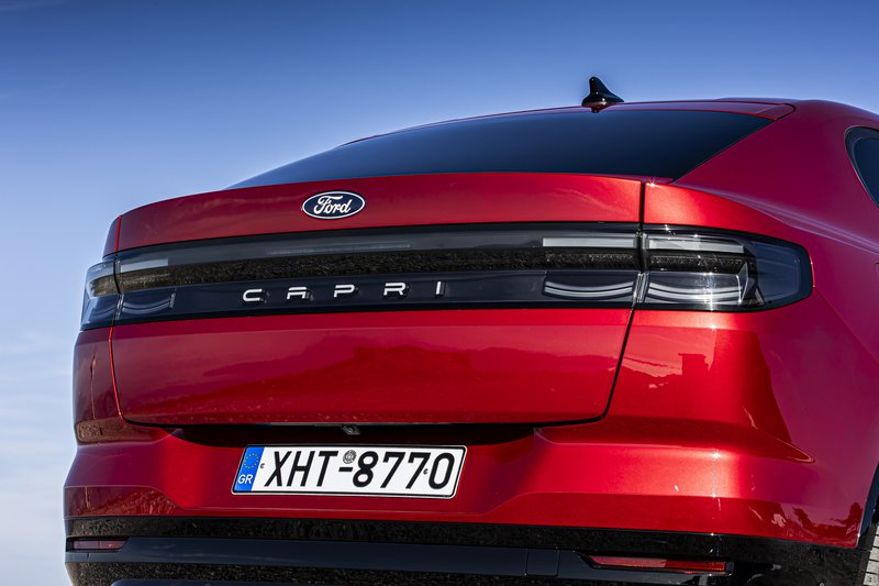 Φαίνεται πως η συνταγή πέτυχε και η Ford έκανε και τρίτο κτύπημα. Αυτήν τη φορά αναβιώνοντας το Capri. Η εμφάνιση του νέου Capri είναι cool. Δεν θα το μπερδέψεις με κάτι άλλο στον δρόμο, μιας και έχει ισχυρή προσωπικότητα ενώ δεν ντρέπεται να προβάλει κάθε γωνία του αμαξώματός του και καλά κάνει. Το παρελθόν συνδυάζεται με το μέλλον με πολύ πετυχημένο τρόπο. Στο πλαίσιο της σχεδιαστικής γέφυρας με το παρελθόν, το πίσω μέρος της οροφής έχει έντονη κλίση, όπως σε ένα coupe, ενώ και το κόψιμο του καπό θυμίζει το πρώτο Capri. Την εικόνα συμπληρώνουν οι εντυπωσιακοί σε διαστάσεις τροχοί.