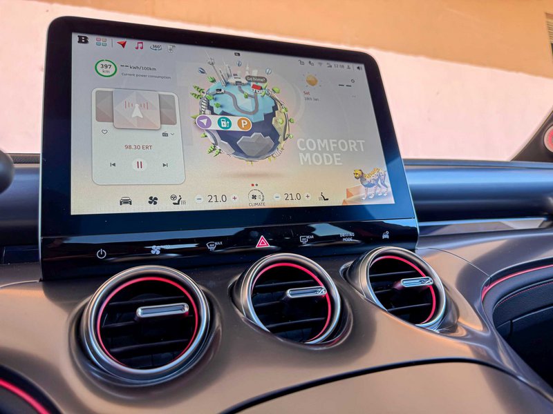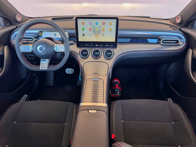 Αναμφισβήτητα η τεχνολογία είναι ένα από τα δυνατά σημεία του #3. Η μεγάλη οθόνη αφής 12,8 ΄΄ του συστήματος infotainment ξεχωρίζει στο κέντρο του ταμπλώ, προσφέροντας μια πλούσια εμπειρία χρήστη. Η ανταπόκριση είναι άμεση και το μενού θα μπορούσε να είναι κατά τις πιο εύκολο στην πλοήγηση. Η υποστήριξη για Apple CarPlay και Android Auto είναι διαθέσιμη, ενώ υπάρχουν και διάφορες εφαρμογές ενσωματωμένες στο σύστημα. Ο πίνακας οργάνων 9,2 ΄΄ full HD είναι, επίσης, πλήρως ψηφιακός, προσφέροντας όλες τις απαραίτητες πληροφορίες με σαφήνεια και ευκρίνεια. Τα συστήματα υποβοήθησης οδηγού είναι, επίσης, προηγμένα, προσφέροντας λειτουργίες, όπως head-up display 10.25’’, προσαρμοζόμενο cruise control, προειδοποίηση για αλλαγή λωρίδας και αυτόματη πέδηση έκτακτης ανάγκης. Για την έκδοση Brabus της δοκιμής μας, η οποία παραδοσιακά έχει τα πιο σπορ χαρακτηριστικά απ’ όλες τις υπόλοιπες, διατίθενται ζάντες 20 ΄΄, σπορτίφ πεντάλ οδήγησης, πανοραμική, θερμοαπορροφητική οροφή που δημιουργεί μια φιλόξενη ατμόσφαιρα, ατμοσφαιρικός φωτισμός και το ηχοσύστημα Beats.