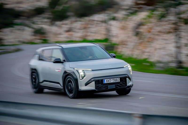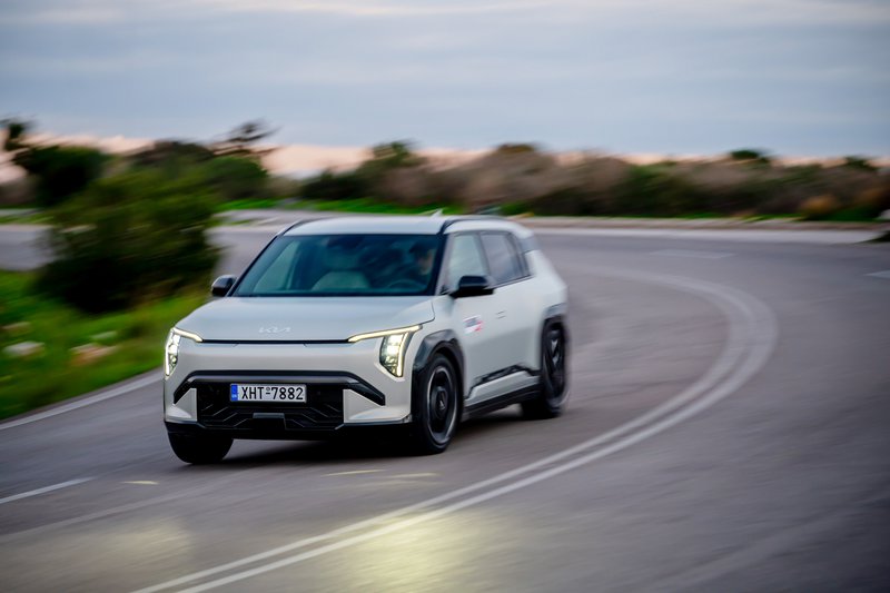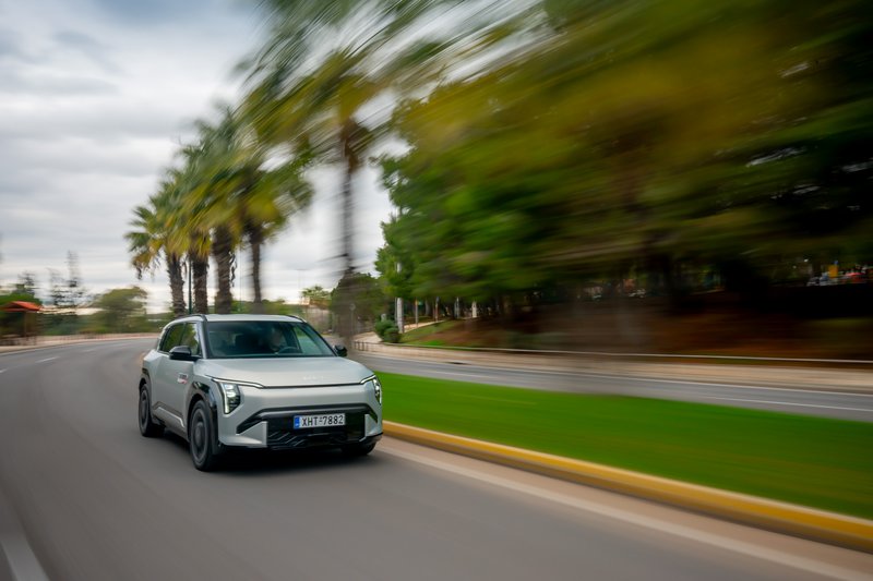 Και αφού το είδαμε, το ψηλαφίσαμε, το αφουγκραστήκαμε, ήρθε η ώρα να σας περιγράψουμε και τι κάνει το νέο EV3 στον στίβο των επιδόσεων και της συμβίωσης – οδηγικής και τεχνολογικής. Σας αναφέραμε όλα όσα κρύβει σε επίπεδο διασύνδεσης, ενώ και το ADAS είναι πρώτης γραμμής (οι Κορεάτες από την πρώτη κιόλας στιγμή αγκάλιασαν με ζέση τον ακρογωνιαίο λίθο της ασφάλειας). Διαλέγεις το πρόγραμμα Eco που αυξάνει την αυτονομία σε βάρος της σπιρτάδας των 204 PS. Ναι, εκκινεί νωχελικά, σαν σε mode σταμάτα-ξεκίνα, Δευτέρα πρωί στην Πανεπιστημίου. Πατάς λίγο παραπάνω το γκάζι και το αυτοκίνητο επιταχύνει γλυκά, γραμμικά και διόλου αυθάδικα. Ο ρυθμός ανεβαίνει, αλλά όχι δραματικά και η κατανάλωση ηλεκτρονίων με ήπιο ρυθμό και κάνοντας χρήση της αναγεννητικής πέδησης με τρεις βαθμίδες, ή με λειτουργία i-pedal ή με χρήση του Cruise Control, κινείται πέριξ των 9 kWh/100km. Πολύ καλό αυτό. Ταυτόχρονα, το αυτοκίνητο είναι άνετο και με έναν εξαιρετικό σύμμαχο: τα ελαστικά νέας γενιάς της Hankook ion Evo διαστάσεων 215/50-R19 ειδικά για EV αυτοκίνητα και με τεχνολογία sound absorber (περισσότερα για αυτό, πού αλλού;, στο Tech Facts που ακολουθεί!) η οποία κάνει πράγματα και θαύματα στην καταστολή θορύβου (τόσο κύλισης υπό κανονικές συνθήκες, όσο και υπό πίεση).
