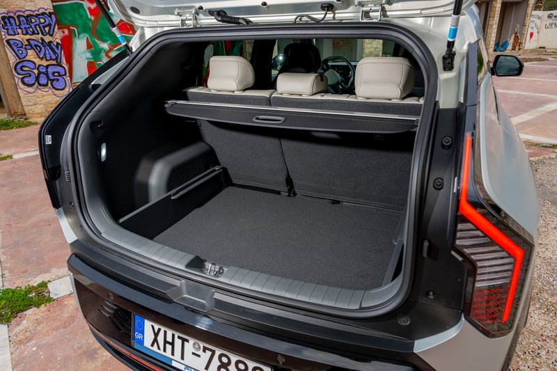 Για τα πολλαπλά ρυθμιζόμενα και θερμαινόμενα και αεριζόμενα καθίσματα; Για το εκπληκτικά εύπεπτο Interface στα ελληνικά το οποίο έχει και AI ψηφιακή βοηθό (στα αγγλικά) που ξέρει τα ελληνικά… κατατόπια (αν, για παράδειγμα, θέλετε να πάτε σε ένα γκουρμέ εστιατόριο, θα σας πάει το EV3). Το κερασάκι στην τούρτα είναι ο χώρος αποσκευών των 460 L που είναι εξαιρετικός για τα δεδομένα της κατηγορίας και το μέγεθος του αυτοκινήτου. Και ναι, υπάρχει και ένα μικρό, πρακτικό frunk 25 L εμπρός (χωράει δύο ζευγάρια παπούτσια άνετα, λασπωμένα ή όχι, δεν έχει σημασία!).