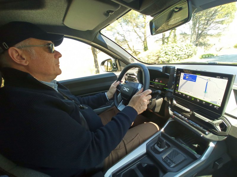 Αυτό ήταν και το αυτοκίνητο με το οποίο ξεκινήσαμε τις δοκιμές μας στη Μασσαλία της Γαλλίας σε ένα σύνολο μεικτών ασφάλτινων διαδρομών. Το περιβάλλον είναι Duster με επιπλέον προσόν την άμεσα προσλαμβάνουσα ευρυχωρία και τη μεγάλη κονσόλα που χωρά πολλά πράγματα. Όλα καμωμένα με σκληρά, καλοσυναρμολογημένα πλαστικά και απίθανη πρακτικότητα με χώρους για τους πίσω επιβάτες (εντούτοις μας έλειψαν οι χειρολαβές οροφής). Άμεσα γίνονται αντιληπτά δυο πράγματα: Η επιμέλεια στην καταστολή θορύβων κύλισης και η εμφανής ευρωστία του συνόλου τόσο σε Eco όσο και -πολύ περισσότερο- σε νορμάλ πρόγραμμα.