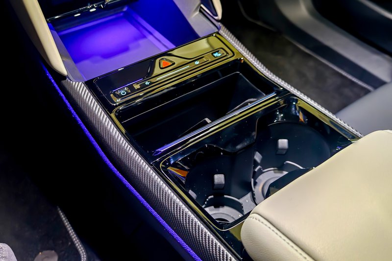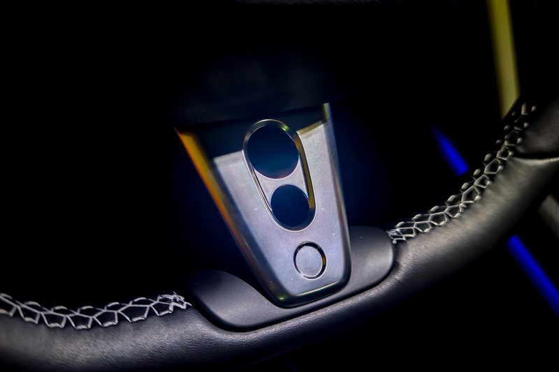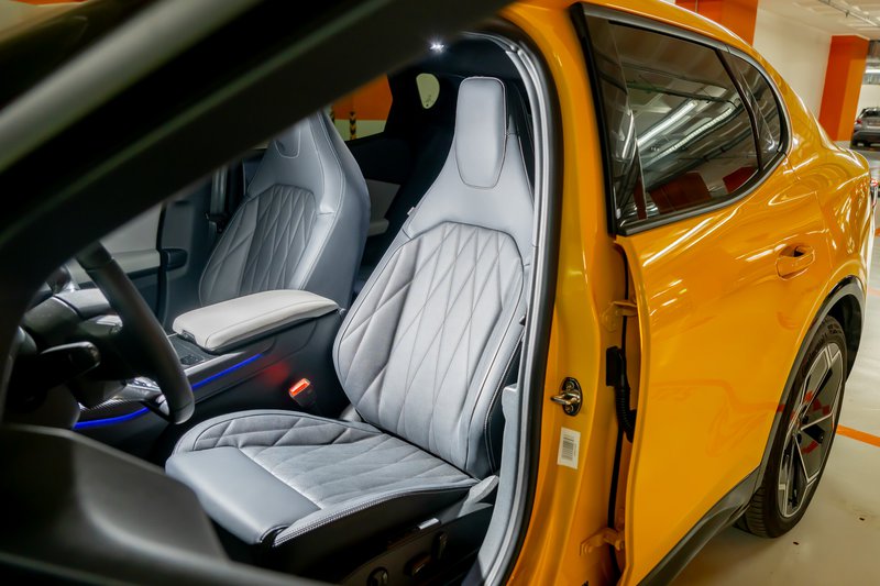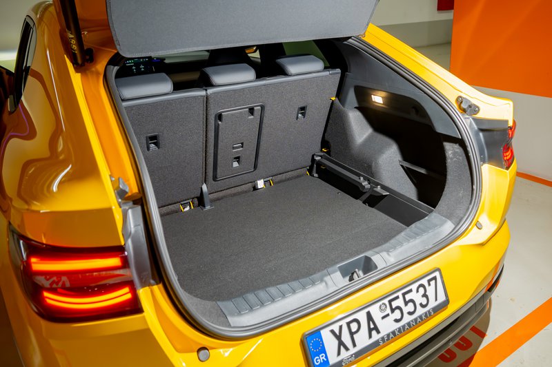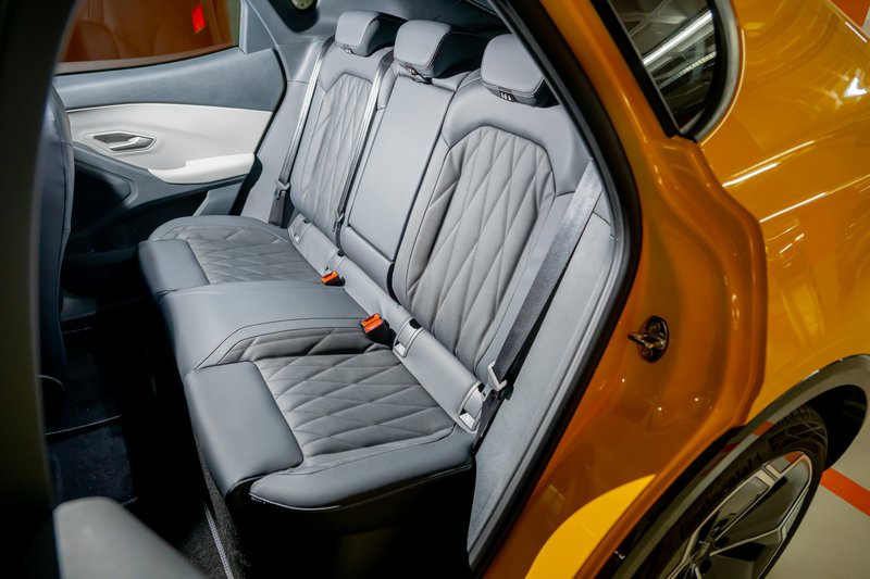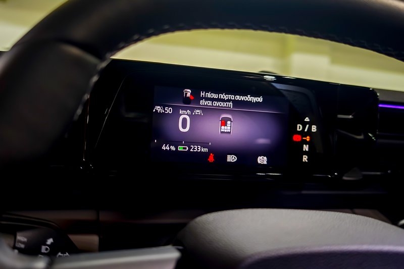 H ευφάνταστη εικόνα συνεχίζεται και στο εσωτερικό. Η φιλοσοφία της μινιμαλιστικής σχεδίασης στα καλύτερά της. Οι φυσικοί διακόπτες είναι ελάχιστοι, ωστόσο η εργονομία δεν είναι προβληματική, όπως σε πολλές παρόμοιες περιπτώσεις. Μόνον η έλλειψη ξεχωριστών διακοπτών για τα πίσω παράθυρα στην πόρτα του οδηγού μάς προβλημάτισε. Το πολυεπίπεδο ταμπλώ με τις ευθείες γραμμές και τη διχρωμία σε συνδυασμό μαύρο-γκρι κολακεύει την κατασκευή. Έχει ευφάνταστη σχεδίαση χωρίς να κουράζει και προσδίδει premium αέρα. Τα πλαστικά κατά κύριο λόγο είναι μαλακά στις επιφάνειες με τις οποίες έρχονται σε επαφή τα χέρια και οι επενδύσεις ποιοτικές. Το πάνω μέρος του ταμπλώ είναι επενδεδυμένο με σκληρό πλαστικό, αλλά αυτό είναι κάτι που στην πράξη περνάει απαρατήρητο, ενώ ένα μεγάλο μέρος καλύπτεται από το εντυπωσιακό σύστημα ήχου της B&O. Αδιαμφησβήτητο highlight αποτελεί η εντυπωσιακή οθόνη αφής των 14,6” της οποίας μπορείς με μηχανικό τρόπο να αλλάξεις την κλίση. Στην πράξη αποδεικνύεται έξυπνη και πρακτική ιδέα μιας και δίνει τη δυνατότητα σε κάθε οδηγό να φέρει την οθόνη στο σημείο που τον βολεύει. Όπως είναι αναμενόμενο, δίνει τη δυνατότητα εύκολης και άμεσης πρόσβασης στην τελευταία λέξη της τεχνολογίας όσον αφορά στη συνδεσιμότητα και στα συστήματα ελέγχου του οχήματος μέσα από ένα λειτουργικό και εύχρηστο περιβάλλον πλοήγησης.