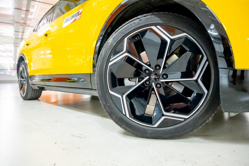 Πρέπει να τους δεις από κοντά για να καταλάβεις το μέγεθός τους, αλλά και της κατασκευής συνολικά που η αλήθεια είναι ότι στις φωτογραφίες δείχνει μικρότερη. Έχει πληθωρικές διαστάσεις το νέο Capri και για να έχουμε ένα μέτρο σύγκρισης είναι 8 cm μικρότερο και μόλις 1 cm πιο στενό σε σύγκριση με μια Mustang Mach-E. Σημειώστε, πάντως, ότι οι extra τροχοί των 21” του αυτοκινήτου της δοκιμής μας φορούσαν ελαστικά Continental EcoContact 6Q, 235/45-R21 εμπρός και 255/40-R21 πίσω. Οι στάνταρ τροχοί της έκδοσης των 340 PS είναι 20” με ιδίου φάρδους ελαστικά, μία επιλογή που προτιμούμε για την ελληνική πραγματικότητα.