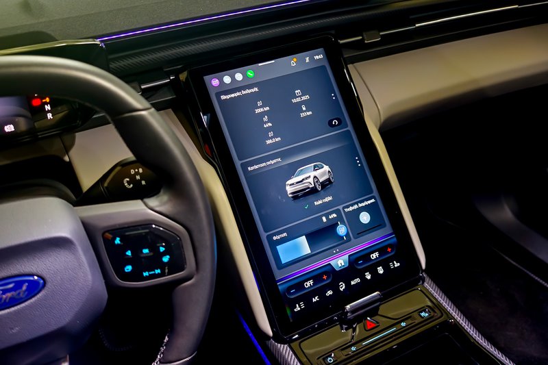 Ωστόσο, η Ford δεν έπεσε στην παγίδα να ενσωματώσει και τον πίνακα οργάνων στην κεντρική οθόνη πολυμέσων. Έτσι, εμπρός από τον οδηγό υπάρχει μια μικρή οθόνη που δίνει όλες τις απαραίτητες πληροφορίες, ενώ συνδυάζεται και με head up display στο αυτοκίνητο της δοκιμής μας, που αποτελεί μέρος του extra πακέτου Driver Assistance Pack. Ο στάνταρ εξοπλισμός είναι υπερπλήρης, ενώ η έκδοση της δοκιμής μας, που ονομάζεται Premium, περιλαμβάνει πλήρως δερμάτινες επενδύσεις στα καθίσματα (η έκδοση Style έχει συνδυασμό δέρμα-ύφασμα), ηχοσύστημα B&O με 10 ηχεία απόδοσης 480W, καθώς και ατμοσφαιρικό φωτισμό 10 χρωμάτων σε 7 σημεία της καμπίνας με ένταση που ρυθμίζεται. Οι χώροι είναι πολύ καλοί για δύο επιβάτες εμπρός. Πίσω θα καθίσουν άνετα τρεις, μιας και απουσιάζει πλήρως το μεσαίο τούνελ. Εντυπωσιακοί είναι και οι χώροι για μικροαντικείμενα, με αποκορύφωμα τον χώρο ανάμεσα στα εμπρός καθίσματα που η Ford ονομάζει MegaConsole και φτάνει στα 17 L! Παραπάνω από επαρκής είναι και ο χώρος αποσκευών, με τα 567 L στην έκδοση Premium (572 η έκδοση Style), τα οποία, όμως, γίνονται 627 και 622 L, αντίστοιχα, αν αφαιρέσεις την εταζέρα.