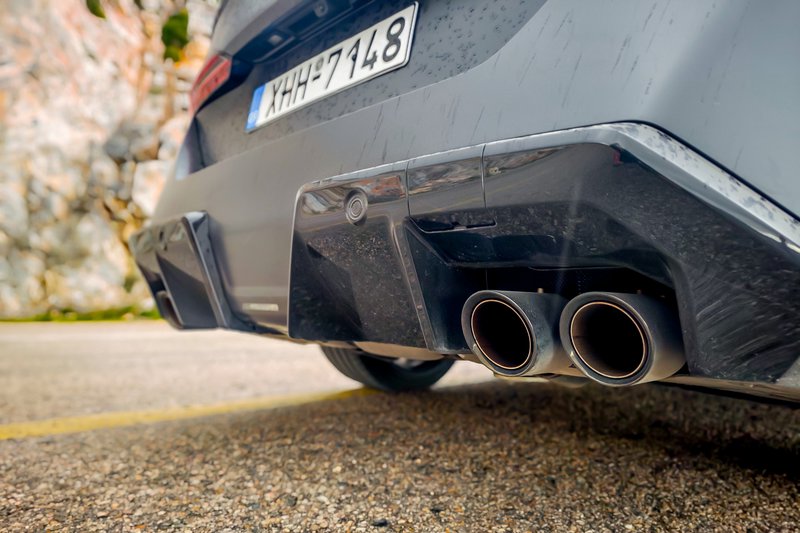 Το αποτύπωμά της είναι πληθωρικό και εντυπωσιακό, από όποια γωνία και να τη δεις. Γεγονός είναι πως έχει μεγαλώσει αρκετά. Ξεπερνώντας για λίγο τα 5 m σε μήκος και φλερτάροντας με τα 2 m πλάτους, θα μπορούσε να είναι μια Μ7 παλαιότερων ετών! Σχεδιαστικά ακολουθεί διαφορετική φιλοσοφία από την προηγούμενη γενιά. Την επεξεργάζεσαι, την παρατηρείς και εντέλει καταλήγεις πως οι σχεδιαστές πέτυχαν τον στόχο τους. Βγάζει μια τρομερή αγριάδα και «αλητεία», ενώ ταυτόχρονα παραμένει πολυτελής και κλασάτη. Τα φουσκωμένα φτερά, οι τεράστιοί τροχοί, οι μεγάλοι αεραγωγοί στο εμπρός μέρος και οι τέσσερις εξατμίσεις στο πίσω μέρος είναι μερικά από τα στοιχεία που τη διαφοροποιούν από τις απλές 5άρες και κάνουν την προηγούμενη γενιά Μ5 να δείχνει κάπως συντηρητική και περισσότερο «κλασική» από όσο θα ήθελες εν έτει 2025. Είναι, βέβαια, και κάτι ακόμα. Ακόμα και σταματημένη, βγάζει ένα τρομερό δυναμισμό και σε τσιγκλάει να την οδηγήσεις υπονοώντας έντονες συγκινήσεις, παρά τον όγκο της.