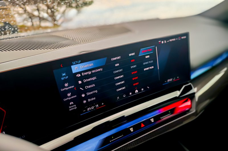 Ο οδηγός μπορεί να έχει προεπιλέξει ρυθμίσεις που αφορούν στο σύστημα κίνησης του Drivelogic, του πλαισίου, του συστήματος διεύθυνσης, του συστήματος πέδησης και του M xDrive, καθώς και των επιπέδων ανάκτησης ενέργειας κατά την πέδηση. Η φάση θυμίζει περισσότερο παιχνίδι σε κονσόλα, παρά πραγματικότητα. Στην πράξη αποδεικνύεται πολύ πρακτικό και δεν ήταν λίγες οι φορές που τα χρησιμοποιήσαμε. Πέρα από τα δύο μπουτόν στο τιμόνι, που αλλάζουν μεμιάς το προφίλ του αυτοκινήτου, μέσω του μπουτόν Setup στην κεντρική κονσόλα μπορείτε να αλλάξετε κάθε στιγμή τις παραμέτρους που αναφέρθηκαν παραπάνω. Η λειτουργία Launch Control είναι διαθέσιμη σε όλες τις ρυθμίσεις του μενού M Setup, με εξαίρεση τη λειτουργία 2WD τού συστήματος M xDrive. Οι μεγάλες εξωτερικές διαστάσεις μεταφράζονται και σε μεγάλους χώρους στο εσωτερικό. Η ευρυχωρία είναι εξαιρετική για όλους τους επιβάτες με χορταστικό πλάτος και ύψος, ενώ το μεταξόνιο των 3 m εγγυάται άφθονο χώρο και για τα πόδια. Ο χώρος αποσκευών έχει αρκετό μήκος, αλλά το πάτωμα είναι κάπως ψηλό, με αποτέλεσμα να φτάνει στα 466 L, που δεν είναι και λίγα, αλλά ούτε και πολλά με βάση τις εξωτερικές διαστάσεις.