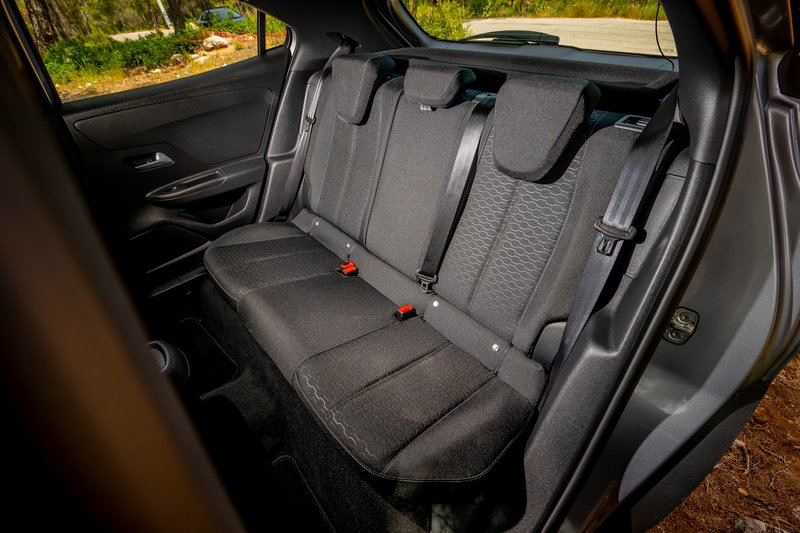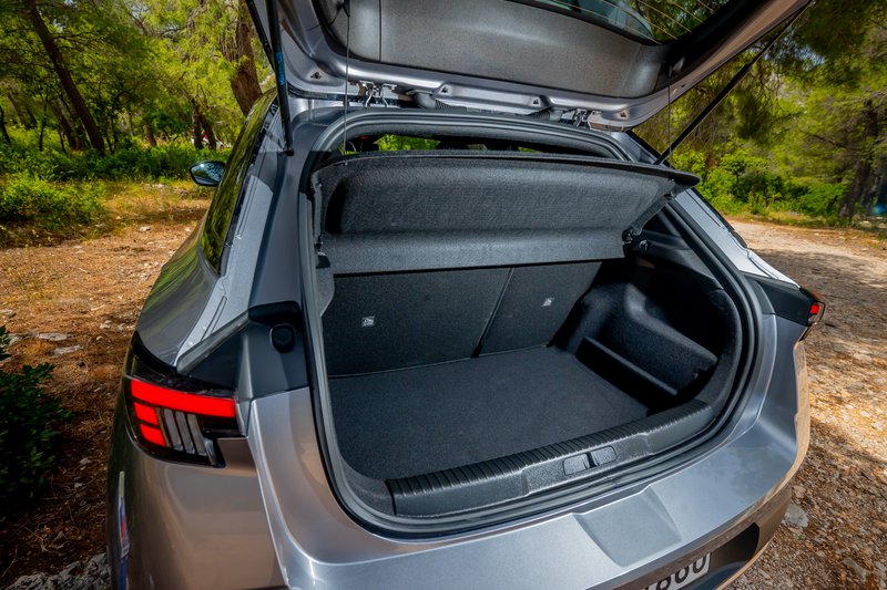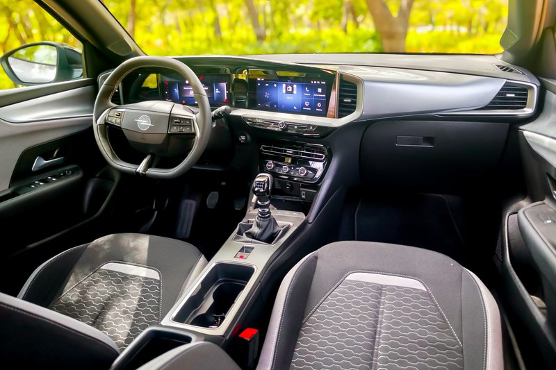 Στο εσωτερικό, η φιλοσοφία "detox" αποπνέει εκείνη την αύρα της νέας Opel χωρίς πολλά-πολλά κι έχοντας ακόμα κάποια κουμπιά για να κάνουν τη ζωή μας εύκολη έτσι, εκτός από τα ανακυκλωμένα υλικά, η νέα εργονομική κονσόλα σε ασημί ματ απόχρωση και μια κάποια ψηφιακή «καθαρότητα» παντρεύονται με τα χειριστήρια και το πανέμορφο τιμόνι που ανασχεδιάστηκε (flat top και bottom), με το νέο Blitz στο κέντρο. Χώροι άνετοι εμπρός υπάρχουν και αρκετοί για μικροαντικείμενα (θα θέλαμε κι ένα ραφάκι για το κινητό μας), ενώ με βάση και τις διαστάσεις του εξαιρετικού πατώματος CMP της Stellantis επάνω στο οποίο βασίζεται μια πλειάδα μοντέλων οι χώροι για τους πίσω επιβάτες και τις αποσκευές είναι μια χαρά για τα δεδομένα της κατηγορίας με πορτμπαγκάζ 350 L. Δύο σημεία ωστόσο απαιτούν συνήθεια: το ψηλό μαρσπιέ που δυσκολεύει λίγο την είσοδο στην καμπίνα και το επίσης ψηλό κατώφλι φόρτωσης του χώρου αποσκευών.