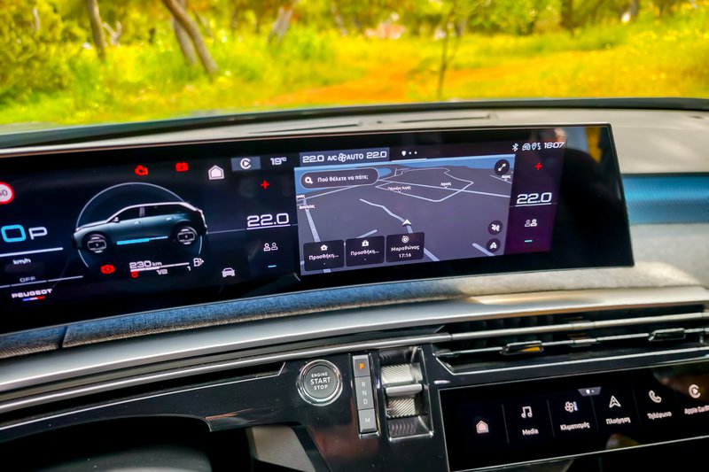 Η έμφαση στην αισθητική που δίνουν οι Γάλλοι ακολουθήθηκε και στο εσωτερικό, το οποίο καταφέρνει να συνδυάσει την πρακτικότητα και την ευρυχωρία με τη μοντέρνα σχεδίαση, τη στιγμή που τα υλικά κατασκευής που έχουν χρησιμοποιηθεί είναι «από το επάνω ράφι» στα επίπεδα ενός premium αυτοκινήτου. Κάτι πασιφανές ακόμα και στον μη «ειδικό», που είναι σίγουρο ότι θα αντιληφθεί και τον τρόπο που κλείνουν τα ηλεκτρικά παράθυρα με τις έξτρα τσιμούχες στο πλαίσιό τους, στα επίπεδα ενός πολυτελούς αυτοκινήτου. Όπως πολύ σωστά έχετε αντιληφθεί, το ταμπλώ του μοντέλου είναι πανομοιότυπο με εκείνο του 3008, κάτι που σημαίνει πώς και εδώ σημείο αναφοράς αποτελεί το Panoramic i-Cockpit με την εντυπωσιακή, αιωρούμενη –κατά κάποιον τρόπο– κυρτή οθόνη των 21΄΄  που συγκεντρώνει τις περισσότερες λειτουργίες του αυτοκινήτου μέσω του infotainment και χειρισμό από 10 ψηφιακούς διακόπτες (i-Toggles) με δυνατότητα εξατομίκευσης, υποστηρικτικά και με φυσικούς.