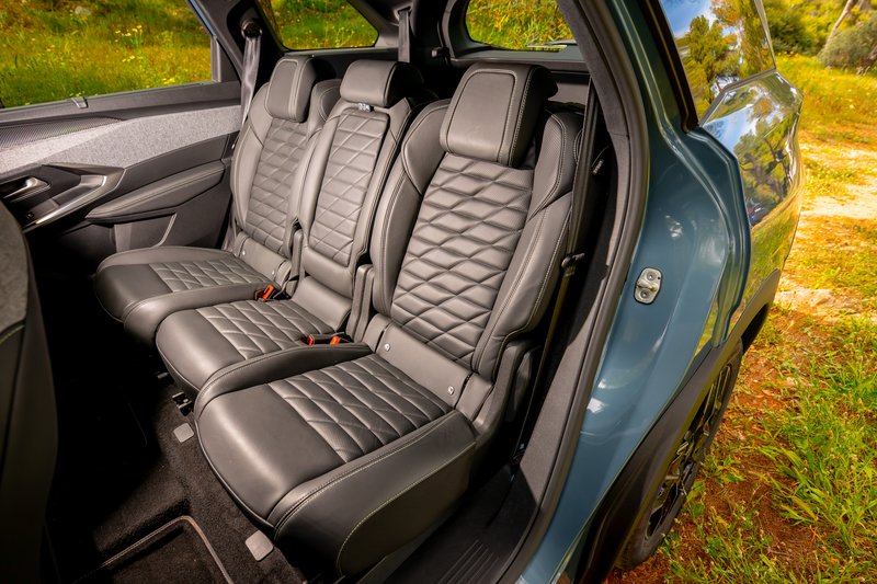 Η διαμόρφωση των καθισμάτων στο επταθέσιο εσωτερικό είναι 2+3+2, με τα καθίσματα της πίσω σειράς (ενιαίο έδρανο, δύο ξεχωριστές πλάτες) να «κρύβονται» στο δάπεδο όταν δεν χρησιμοποιούνται, δημιουργώντας ένα μεγάλο και πλήρως εκμεταλλεύσιμο πορτ-μπαγκάζ 748 L (259 L στην επταθέσια διαμόρφωση και 1.815 L στη διθέσια). Ακόμα και τα πίσω καθίσματα είναι αναπαυτικά με ικανό πάχος και ύψος πλάτης, ενώ η μεσαία σειρά προσφέρει τη δυνατότητα ασύμμετρης αναδίπλωσης (60/40 για το έδρανο και 40/20/40 για τις πλάτες), αλλά και ανεξάρτητης ρύθμισης κλίσης της πλάτης σε πέντε θέσεις. Σε ό,τι αφορά στην πρόσβαση στις δύο επιπλέον θέσεις, αυτή διευκολύνεται με τη μετατόπιση προς τα εμπρός την μεσαίας σειράς, αλλά απαιτεί μια κάποια… ευελιξία από τους επιβάτες. Σαφές ότι είναι οι θέσεις της 3ης σειράς είναι κατάλληλες για παιδιά ή νεαρά άτομα μετρίου αναστήματος. Ολοκληρώνοντας με την πρακτικότητα του 5008, να αναφέρουμε ότι προσφέρει μια εντελώς επίπεδη επιφάνεια δαπέδου, ενώ με όλα τα πίσω καθίσματα αναδιπλωμένα δυνατότητα μεταφοράς αντικειμένων μήκους έως 2 m και σε πλήρη διάταξη (επταθέσιο) το πορτμπαγκάζ του έχει μήκος 42 cm, από τα μεγαλύτερα στην κατηγορία.