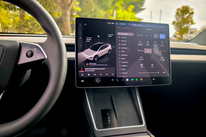 Το τιμόνι προέρχεται από το ανανεωμένο Model 3, προσφέροντας μηχανικό μοχλό φλας (ήταν δίκαιο, έγινε πράξη). Η κεντρική κονσόλα ανασχεδιάστηκε με sliding καλύμματα και περισσότερους αποθηκευτικούς χώρους, ενώ συνολικά το περιβάλλον καμπίνας είναι πιο φιλόξενο και πολυτελές ενώ να υπενθυμίσουμε ότι τα Model Y που προορίζονται για την ευρωπαϊκή αγορά κατασκευάζονται στο Tesla Gigafactory στο Βερολίνο. Κι όλα αυτά ψάχνοντας τις αλλαγές με το υποδεκάμετρο καθώς η αισθητική δεν έχει αλλάξει.