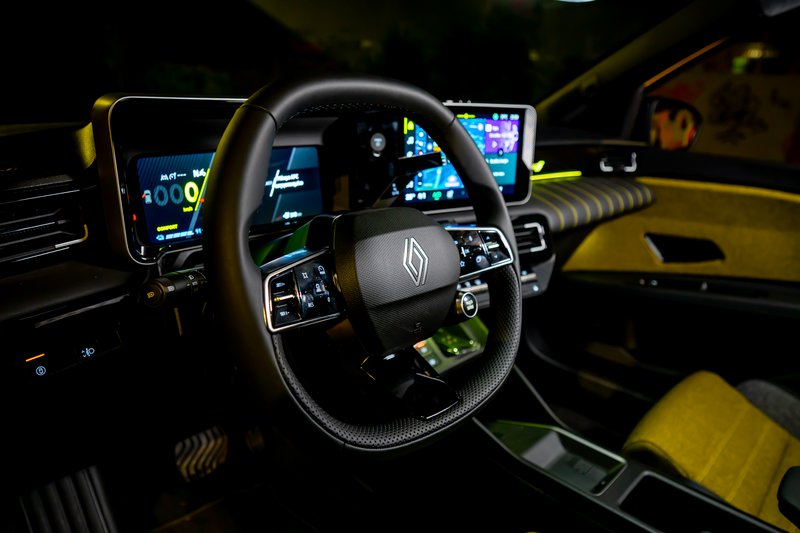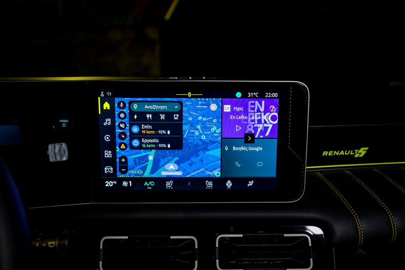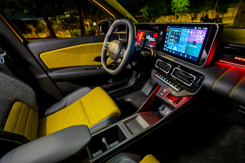 Η καμπίνα χαρακτηρίζεται από την αίσθηση της ποιότητας, με μοντέρνα διάταξη και έντονες αναφορές στο παρελθόν. Ιδίως από την πλευρά του συνοδηγού... Δύο ψηφιακές οθόνες κυριαρχούν στο ταμπλώ: μία 10” μπροστά από τον οδηγό και άλλη μία στο κέντρο (10,25”) με το σύστημα infotainment OpenR Link. Το λογισμικό βασίζεται σε Android Automotive, με πλήρη υποστήριξη Google Maps, Assistant και εφαρμογών. Η Τεχνητή Νοημοσύνη κάνει την εμφάνισή της μέσω του ψηφιακού βοηθού Reno, ο οποίος με τη μορφή καρτούν στην οθόνη αλληλεπιδρά με τον οδηγό και ρυθμίζει λειτουργίες του αυτοκινήτου με φωνητικές εντολές.