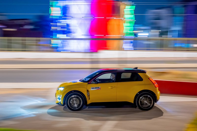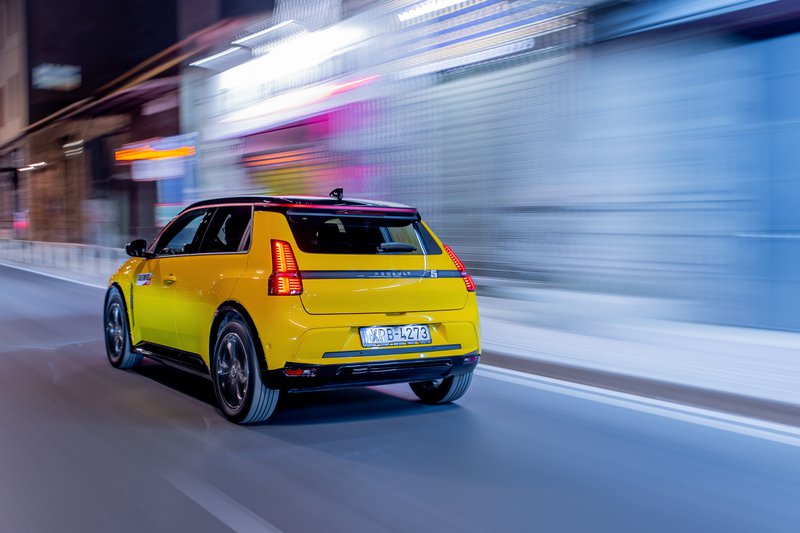 Στον δρόμο, το Renault 5 αποδεικνύεται απροσδόκητα απολαυστικό. Η οδηγική του αίσθηση θυμίζει περισσότερο θερμικό supermini με καλό set-up ανάρτησης, παρά ένα «αποστειρωμένο» οδηγικά ηλεκτρικό όχημα. Η εμπρός ανάρτηση αποτελείται από γόνατα McPherson και η πίσω από πολλαπλούς συνδέσμους, κάτι που σπάνια συναντάς στην κατηγορία. Το τιμόνι είναι ακριβές, με καλή πληροφόρηση, και η συνολική αίσθηση του πλαισίου στιβαρή προσφέροντας αυτοπεποίθηση στον οδηγό, ακόμα και υπό πίεση. Σημαντικό ρόλο σε αυτά τα χαρακτηριστικά του αυτοκινήτου έχει και το γεγονός ότι η μπαταρία (300 kg) εδράζεται στο δάπεδο, εξασφαλίζοντας χαμηλό κέντρο βάρους (απόσταση από το έδαφος: 14,5 cm) και βελτιστοποιημένο «ζύγισμα».