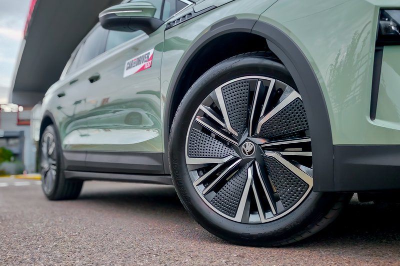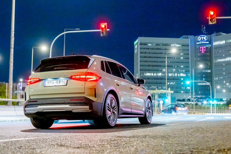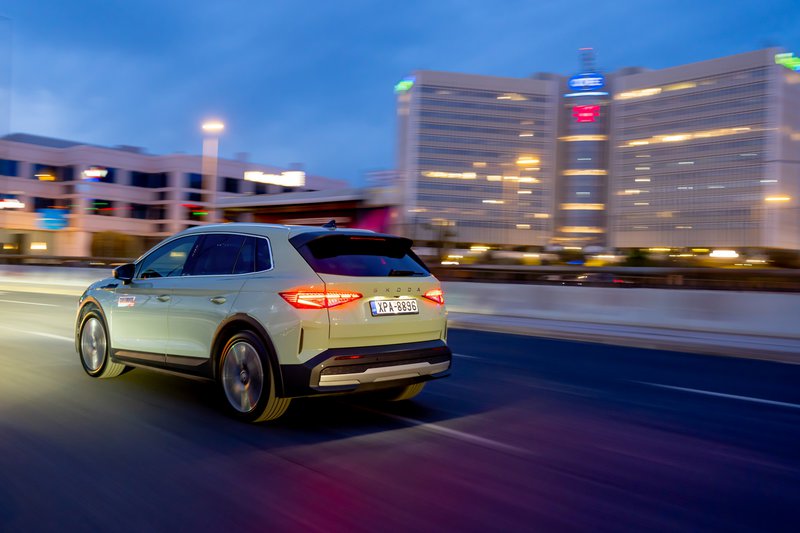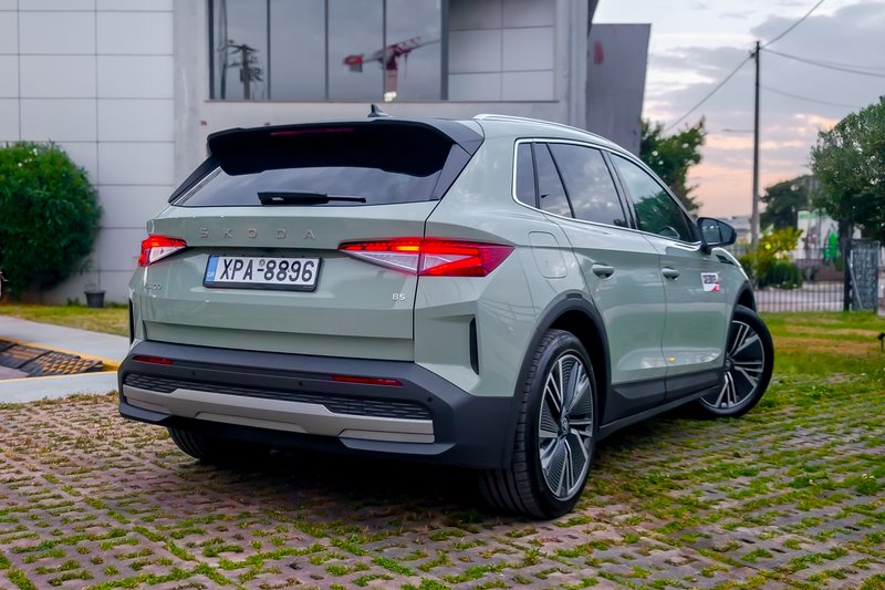 Το Elroq δεν θα μπορούσε παρά να βασίζεται στην πλατφόρμα MEB, του Ομίλου Volkswagen Στην έκδοσή μας Elroq 85 η κίνηση περνά στον πίσω άξονα από έναν ηλεκτροκινητήρα που βρίσκεται επίσης πίσω, ισχύος 286 PS και προσφέροντας μέγιστη ροπή 545 Nm. Και αν και οι επιδόσεις επιτάχυνσης είναι απλώς από άλλον πλανήτη (0-100 km/h σε 6,6 sec), αυτό που κρατάμε είναι η καθημερινότητα μαζί του. Βλέπετε, το Elroq είναι ένα από τα λίγα αμιγώς ηλεκτρικά μοντέλα που ενσωματώνει τον χαρακτήρα της φίρμας με τέτοιο φιλικό τρόπο, ώστε είναι πρώτα ένα Skoda και μετά ένα ηλεκτρικό αυτοκίνητο. Η ομοιογένεια στο οδηγικό κομμάτι, στην προσλαμβάνουσα ποιότητα κύλισης, στο κράτημα και στην άνεση είναι αυτή αρκετών θερμικών Skoda και αυτή είναι μια μεγάλη επιτυχία για τους μηχανικούς και τους δοκιμαστές της μάρκας στη διαδικασία του σεταρίσματος. Μέχρι και τα ελαστικά της Hankook δεν είναι τα κορυφαία Ion που έχουμε δει σε πολλά ηλεκτρικά μοντέλα, αλλά τα Ventus S1 evo3 EV διαστάσεων 235/50-R20. Κι ακόμα κι έτσι, το αυτοκίνητο που δεν διαθέτει ρυθμιζόμενη σκληρότητα αμορτισέρ, είναι σταθερό και απρόσμενα άνετο, χωρίς κοπανήματα.