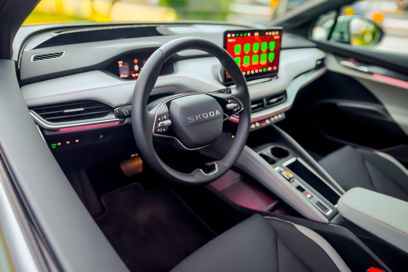 Το Elroq διαθέτει στάνταρ κεντρική οθόνη infotainment 13” με user Interface, που το έχουμε δει στα Enyaq, Superb και Kodiaq, αλλά όχι το smart dials, τις μικρές περιστροφικές οθόνες αφής που προγραμματίζονται να διαχειρίζονται συγκεκριμένες λειτουργίες. O επιλογέας είναι –ακόμα– στην παλιά θέση, στα αριστερά της… διώροφης κονσόλας και υπάρχει –ευτυχώς– ακόμα μία συστοιχία διακοπτών για βασικές λειτουργίες στη βάση της οθόνης, που παρέχει γρήγορη πρόσβαση σε μενού τα οποία ελέγχουν τα συστήματα υποβοήθησης οδηγού, τις λειτουργίες οδήγησης, τις λειτουργίες στάθμευσης και τα χειριστήρια κλιματισμού.