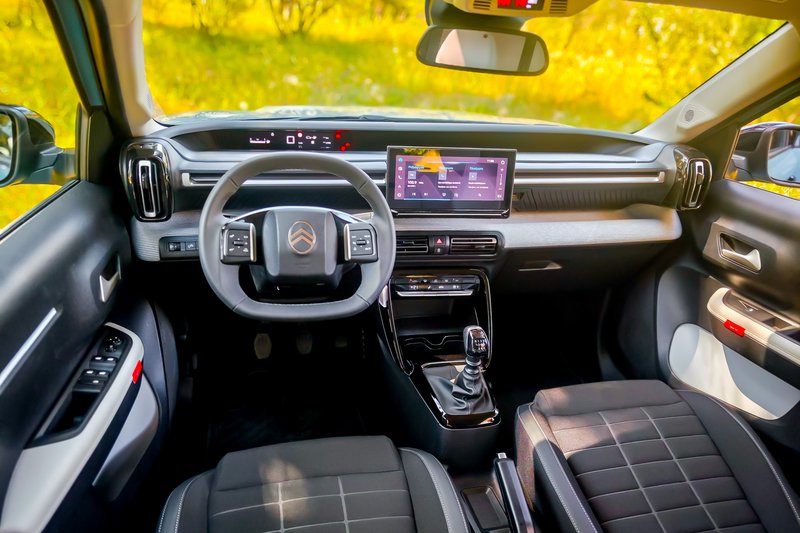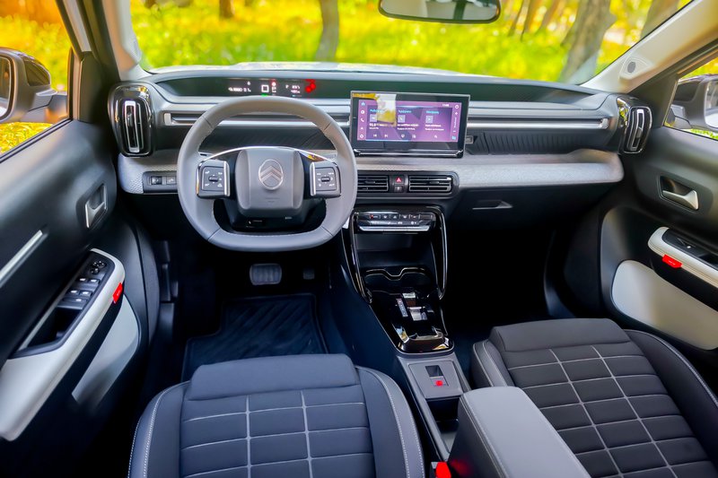 Σημειώνουμε στο σημείο αυτό ότι η προσπάθεια της Citroen να προσφέρει ένα πολύ προσιτό ηλεκτρικό αυτοκίνητο φαίνεται ότι οδήγησε σε μια σειρά επιλογές που κάπως ξενίζουν, όπως η απουσία προγραμμάτων λειτουργίας του συστήματος κίνησης (drive modes), αλλά και η απουσία ένδειξης κατανάλωσης στον κατά τ’ άλλα πρακτικό πίνακα οργάνων (που είναι τοποθετημένος σε εξαιρετικό σημείο, ψηλά, κοντά στο οπτικό πεδίο του οδηγού, καταργώντας την ανάγκη ενός head-up display). Έτσι την κατανάλωση την υπολογίσαμε με βάση το επίπεδο φόρτισης της μπαταρίας και τα χιλιόμετρα που διανύσαμε, συμπεραίνοντας ότι η τυποποιημένη μέτρηση WLTP ανταποκρίνεται στην πραγματικότητα. Η κατανάλωση αυτή είναι βέβαιο ότι μπορεί να συμπιεστεί περαιτέρω με νορμάλ, καθημερινή, αστική χρήση (αστικός κύκλος WLTP 12,2 -12,5 kWh/100 km, με αυτονομία έως 459 km, όταν η συνδυασμένη αυτονομία φτάνει τα 320 km), αφού εμείς οδηγήσαμε το αυτοκίνητο σε μεικτές συνθήκες και σε ένα βαθμό πιέζοντάς το. Σημειώνουμε δε ότι προφανώς προς χάριν της βελτίωσης της αυτονομίας η προεπιλεγμένη λειτουργία του ë-C3 αντιστοιχεί σε αυτό που συνήθως συναντάμε ως “B” στον επιλογέα του συστήματος κίνησης, προσφέροντας αυξημένη επιβράδυνση, ενώ ο ίδιος ο επιλογέας στη συγκεκριμένη περίπτωση προσφέρει τη θέση “C” στην οποία το αυτοκίνητο «ρολάρει» περισσότερο.