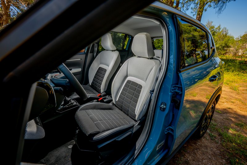 Εάν έχεις οδηγήσει το συμβατικό C3 με τον κινητήρα των 100 PS, μπαίνοντας στο ηλεκτρικό αδερφάκι του δεν θα αργήσεις να συνειδητοποιήσεις την διαφορά στην άνεση. Εξηγούμαστε: είναι προφανές ότι το επιπρόσθετο βάρος της μπαταρίας έπρεπε να αντιμετωπιστεί με μια πιο σφιχτή ανάρτηση, δηλαδή με μια μικρή παραχώρηση στον τομέα που η Citroen δεν έχει αντίπαλο, αυτόν της άνεσης – με τα γνωστά “progressive hydraulic cushions” αμορτισέρ να κάνουν φοβερή δουλειά. Αυτό όμως δεν σημαίνει ότι το ë-C3 γίνεται ενοχλητικό, παρόλο που ακούγεται λίγο παραπάνω στις αναμετρήσεις του με τις κακοτοπιές της ασφάλτου, ενώ από την άλλη μεριά καταλήγει τελικά να αποκτά ένα πλεονέκτημα στον τομέα της οδικής συμπεριφοράς, αφού γέρνει λιγότερο και σου προσφέρει καλύτερη αίσθηση / μεγαλύτερη αυτοπεποίθηση στις στροφές, υπερνικώντας την αδράνεια των 250 παραπανήσιων κιλών του. Λεπτομέρεια θα πείτε, δεν είναι σπορ τα δύο γαλλικά supermini, αλλά η εικόνα είναι αυτή… Όπως είναι επίσης γεγονός ότι χάρη στα πίσω του δισκόφρενα το ë-C3 φρενάρει και καλύτερα (το C3 έχει ταμπούρα στον πίσω άξονα).