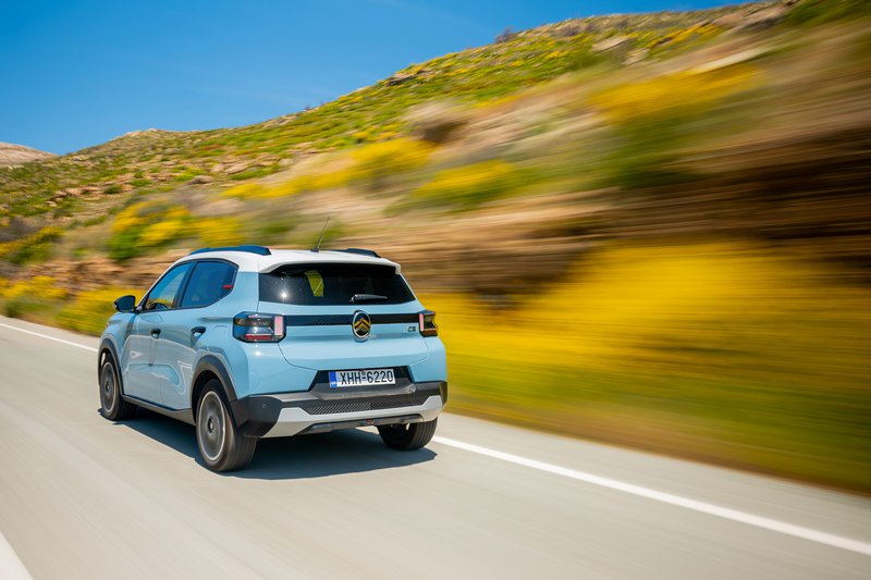 Αυτή η παροχή που περιγράψαμε είναι μάλιστα και ένα μεγάλο προσόν σε μια ανηφορική διαδρομή με στροφές: απλώς πατάς το γκάζι και βρίσκεσαι με φουλ ροπή, όταν στο βενζινοκίνητο C3 αυτή τη ροπή την ψάχνεις αλλάζοντας σχέσεις στο κιβώτιο ταχυτήτων κάθε τόσο. Και παρόλο που ο εξελιγμένος, κύκλου Miller πλέον, υπερτροφοδοτούμενος βενζινοκινητήρας 1.199 cc είναι αρκετά «ροπάτος» και συνδυάζεται με ένα πολύ εύχρηστο 6άρι κιβώτιο καταφέρνοντας να κινήσει αξιοπρεπέστατα το C3, με το ë-C3 είσαι τελικά πιο… άνετος. Τόσο ώστε να παραβλέψεις την έλλειψη κάποιας ουσιώδους ρύθμισης της ανάκτησης ενέργειας για φρενάρισμα με τον κινητήρα, αλλά και τον λίγο ιδιότροπο επιλογέα του συστήματος κίνησης που θέλει κάποιες φορές να κάνεις δύο κινήσεις (πχ. για να επιλέξεις D από R), εκεί που άλλα ηλεκτρικά αυτοκίνητα θέλουν μία.