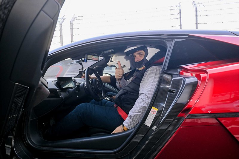 Ο ήχος της εκκίνησης αλλά και της επιτάχυνσης (ηλεκτρικός, άμεσος με μια νότα sci-fi), η βύθιση στο κάθισμα καθώς το αυτοκίνητο ξεδιπλώνει τη δύναμή του προς τα εμπρός, και η αίσθηση του τιμονιού που «ζητά» περισσότερη ταχύτητα, δημιουργούν μια εμπειρία που προσφέρει και την αίσθηση της πολυτέλειας αλλά και της αγωνιστικής διάστασης ακόμα και με μια υποψία να παίξεις μαζί του καθώς το πίσω μέρος μπορεί να κάνει κάτι το εντυπωσιακό όπως διαπιστώσαμε εκεί στην τελευταία δεξιά στροφή, πριν ολοκληρώσουμε τα hot laps και μπούμε στο pit lane.
