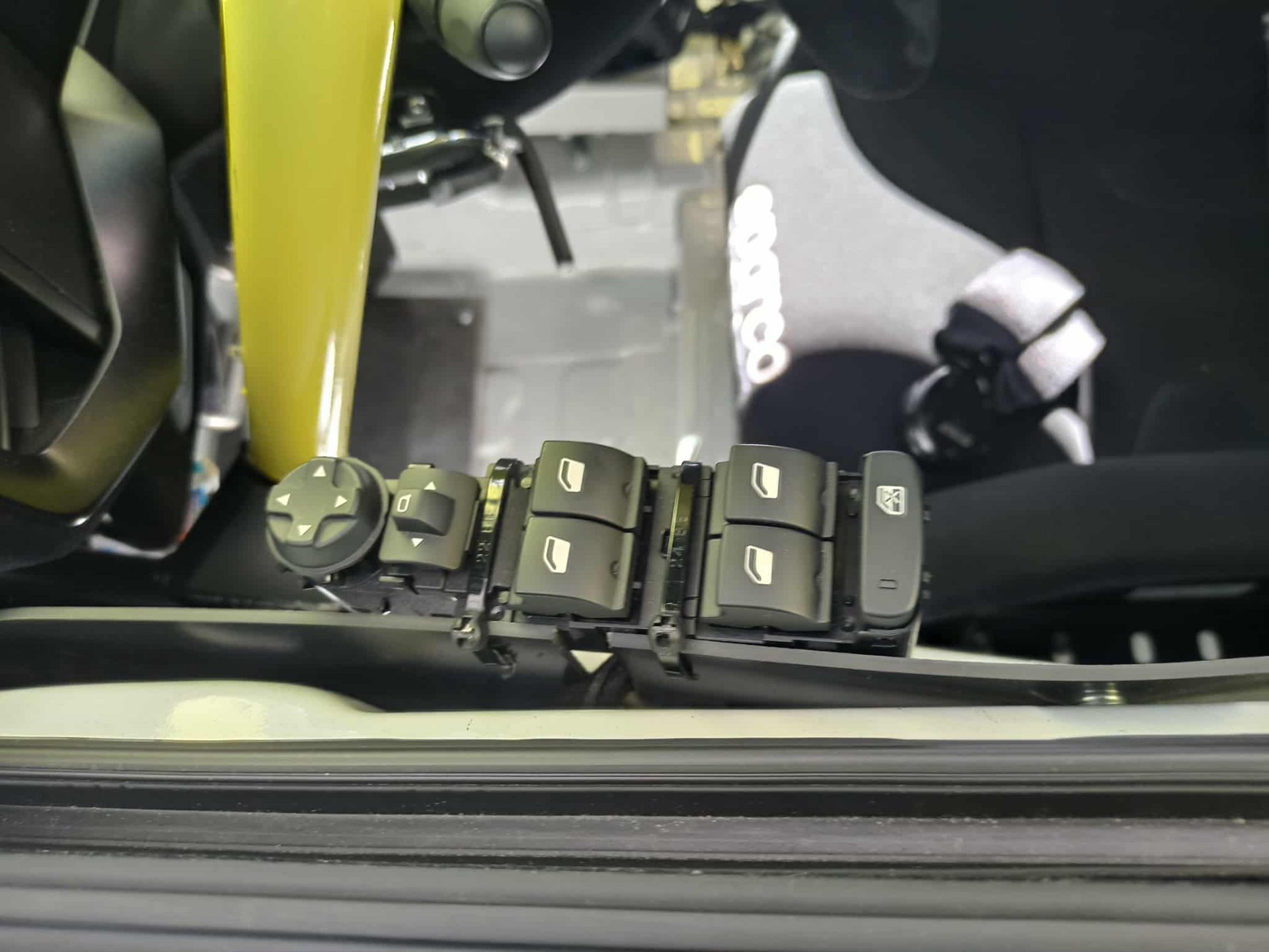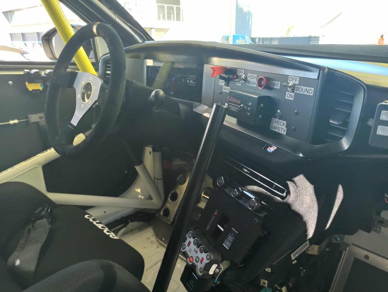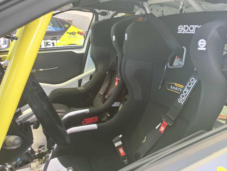 Μέσα, σε υποδέχεται ένα καθαρά αγωνιστικό περιβάλλον: Ειδικός πίνακας οργάνων, πλήρης αγωνιστική καλωδίωση, data logger, ακόμη και δυνατότητα tripmaster ή πρόσθετης συστοιχίας προβολέων. Τα καθίσματα της Sparco και οι ζώνες 6 σημείων σε συνδυασμό με το roll cage κάνουν σαφές ότι η ασφάλεια αντιμετωπίζεται με την ίδια σοβαρότητα που θα περίμενες από ένα Rally4.