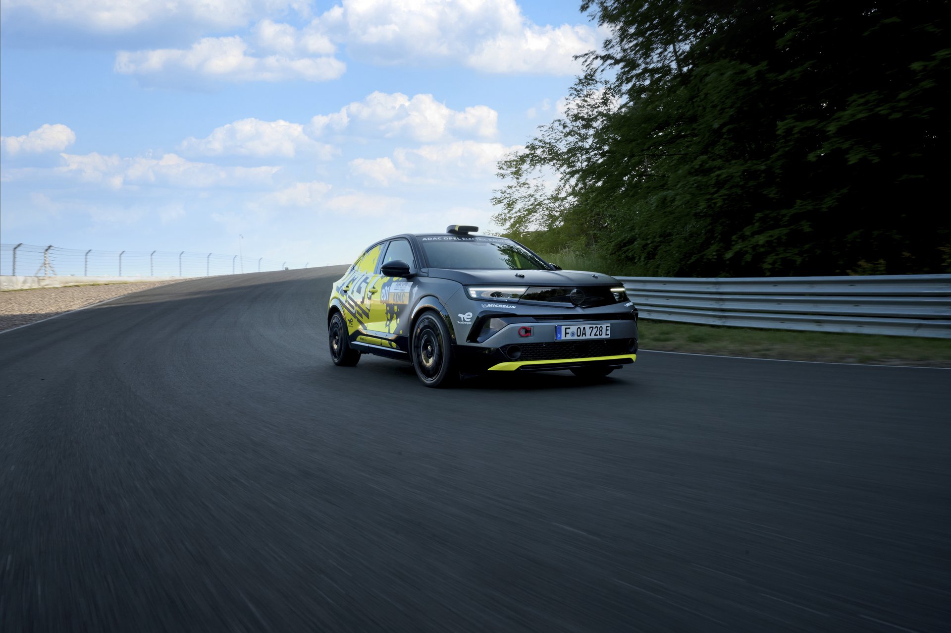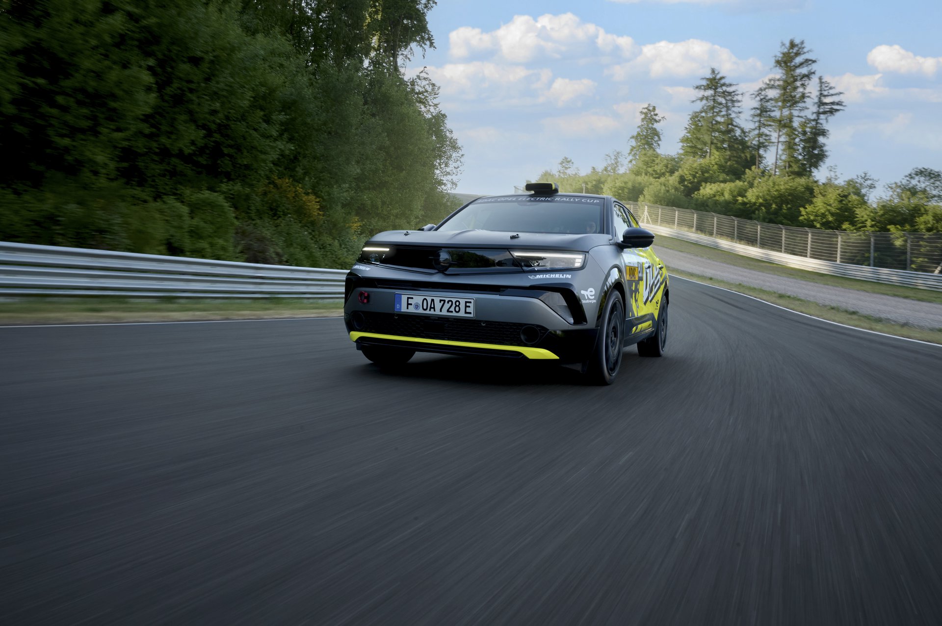 Και κάπου εδώ αρχίζει η ουσία: 281 PS και 345 Nm. Είναι ο ίδιος eMotors M4 ηλεκτροκινητήρας και η ίδια μπαταρία 54 kWh του Mokka GSE παραγωγής, μόνο που εδώ συνεργάζονται με αγωνιστικό κιβώτιο, πολύδισκο διαφορικό περιορισμένης ολίσθησης και ενισχυμένους άξονες και πλήμνες.