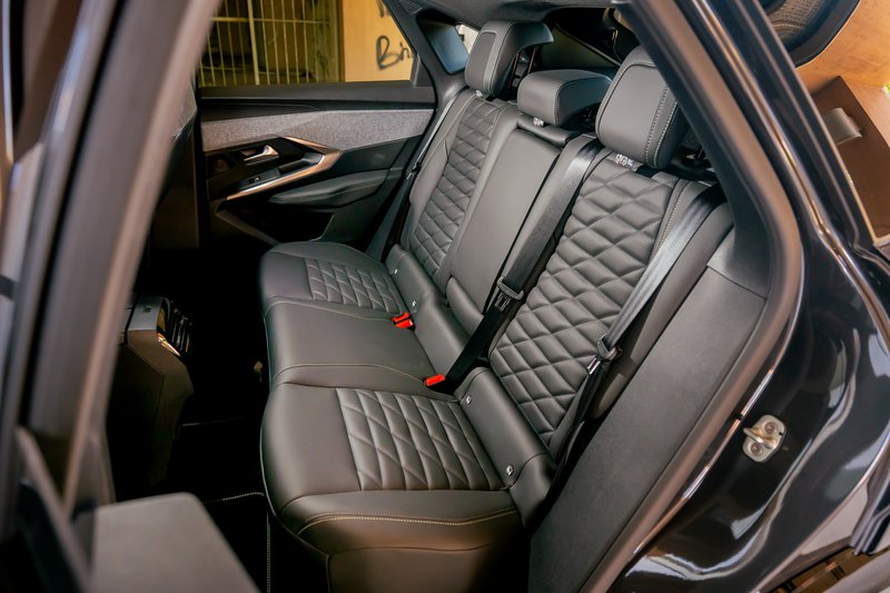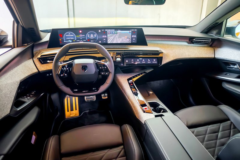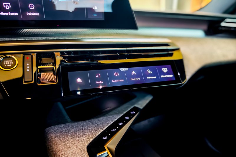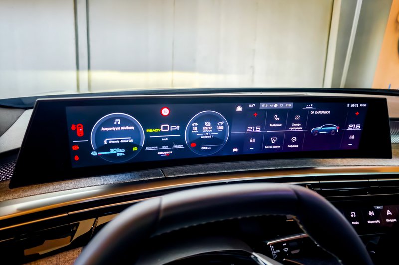 Σε αυτά προστίθενται ζάντες αλουμινίου 20” diamond-cut, αντλία θερμότητας για βελτιωμένη ενεργειακή απόδοση σε χαμηλές θερμοκρασίες και πολυτελές εσωτερικό με επένδυση Nappa και ανάγλυφο λογότυπο Peugeot στα προσκέφαλα. Τα εμπρός καθίσματα διαθέτουν ηλεκτρικές ρυθμίσεις 10 θέσεων, λειτουργία μασάζ κορυφαίας απόδοσης (όπως διαπιστώσαμε) με πέντε προγράμματα και τρεις εντάσεις, προσαρμοζόμενα πλαϊνά στηρίγματα και μνήμη θέσης οδηγού, ενώ και τα καθίσματα εμπρός και πίσω είναι θερμαινόμενα. Η πανοραμική ανοιγόμενη ηλιοροφή και ο φωτισμός περιβάλλοντος με οκτώ χρώματα ενισχύουν την αίσθηση πολυτέλειας, ενώ το σύστημα Clean Cabin βελτιστοποιεί την ποιότητα του αέρα στο εσωτερικό. Ο εξοπλισμός ολοκληρώνεται με το εξαιρετικό ηχοσύστημα της γαλλικής hi-end εταιρίας Focal με 10 ηχεία, που περιλαμβάνει τέσσερα tweeters, τέσσερα ηχεία μεσαίων, ένα κεντρικό ηχείο και subwoofer, προσφέροντας –όπως διαπιστώσαμε με τα αυτιά μας- κορυφαία ακουστική εμπειρία. Τον top εξοπλισμό συμπληρώνει το πακέτο 360° Vision & Drive Assist Pack, με τέσσερις κάμερες υψηλής ευκρίνειας για βελτιωμένη ορατότητα στις μανούβρες, ειδοποίηση εγκάρσιας κίνησης πίσω, ανίχνευση τυφλού σημείου μεγάλης εμβέλειας και προστασία πλευρών (Flank Guard Protection). Το Highway Assist 2.0 επιτρέπει ημι-αυτόνομη οδήγηση, χάρη στις λειτουργίες Lane Positioning Assist, Semi-Automatic Lane Change και Recommended Speed Adaptation.