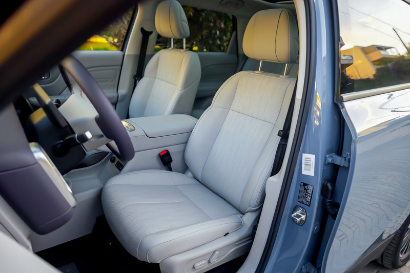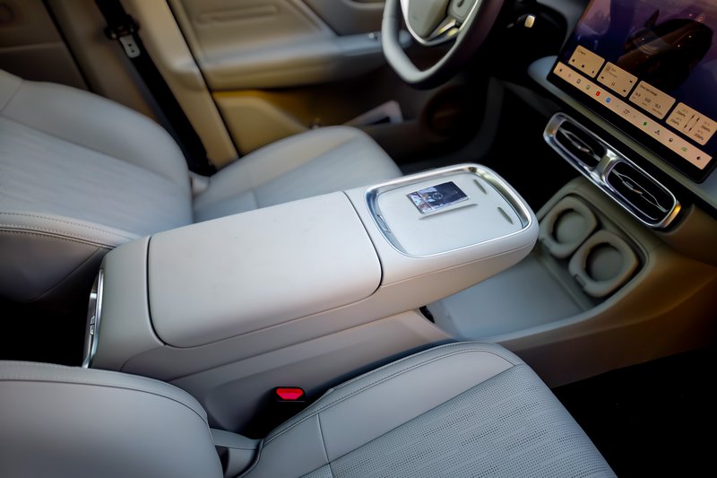 Τα καθίσματα είναι άνετα και στην έκδοση της δοκιμής (Design), είναι θερμαινόμενα και αεριζόμενα. Χωρίζονται από μια σχετικά ψηλή κεντρική κονσόλα, στο επάνω μέρος της οποίας υπάρχει θέση για ασύρματη φόρτιση κινητού, καθώς και θέση για την κάρτα-κλειδί η οποία θέτει σε λειτουργία το αυτοκίνητο.