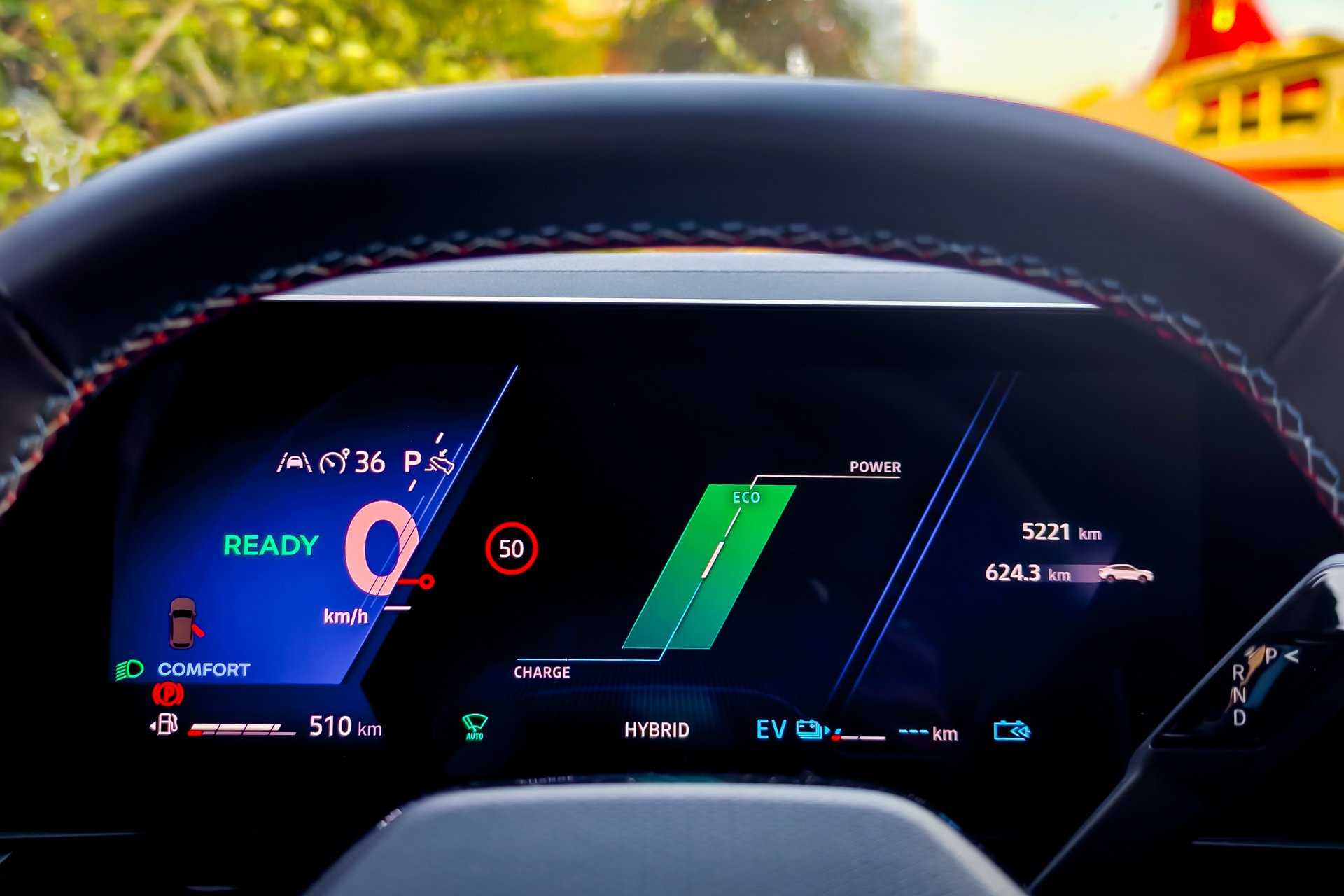 Η συνδυαστική ισχύς φτάνει τους 300 PS και η ενέργεια αποθηκεύεται σε μπαταρία 22 kWh, επιτρέποντας έως 105 km αμιγώς ηλεκτρικής αυτονομίας σύμφωνα με το WLTP. Στην καθημερινή χρήση, με φορτισμένη μπαταρία, το Rafale κινείται συχνά ηλεκτρικά, αθόρυβα και πολιτισμένα, με ομαλές μεταβάσεις μεταξύ των τρόπων λειτουργίας. Όταν ζητηθεί πλήρης ισχύς, το σύστημα συνεργάζεται αποτελεσματικά, προσφέροντας 0-100 km/h σε 6,4 sec και ρεπρίζ 80-120 km/h σε 4,0 sec. Παρά τα εντυπωσιακά νούμερα, ο χαρακτήρας του συνόλου δεν είναι σπορ με την αυστηρή έννοια. Παρά τη συνολική ισχύ των 300 PS, η μικρή χωρητικότητα του τρικύλινδρου κινητήρα δεν μπορεί να κρυφτεί όταν αυξάνεται ο ρυθμός. Ο μικρός σε κυβισμό τρικύλινδρος κινητήρας αποκαλύπτει τις αδυναμίες του όταν αυξάνεται ο ρυθμός. Υπό πίεση γίνεται αισθητός τόσο σε ήχο όσο και σε αίσθηση, δουλεύοντας σκληρά για να υποστηρίξει το βάρος των σχεδόν δύο τόνων του Rafale, με αποτέλεσμα πιο τραχιά λειτουργία και αυξημένες απαιτήσεις σε καύσιμο. Η ισχύς αποδίδεται μεν ομαλά και προβλέψιμα, στοιχείο που ταιριάζει σε ένα γρήγορο και άνετο SUV, χωρίς όμως να προσφέρει τη σπορ αίσθηση που θα περίμενε κανείς από ένα πιο «καθαρόαιμο» σε δυναμικό χαρακτήρα, σύνολο.