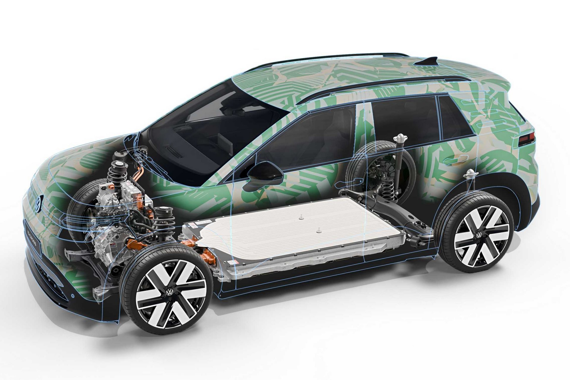 Η μπαταρία υψηλής τάσης τοποθετείται επίπεδα στο δάπεδο του αυτοκινήτου, σύμφωνα με τη φιλοσοφία της πλατφόρμας, χαμηλώνοντας το κέντρο βάρους και βελτιώνοντας την κατανομή μάζας. Η διάταξη αυτή δημιουργεί επίσης επίπεδο πάτωμα στην καμπίνα, επιτρέποντας καλύτερη εκμετάλλευση των εσωτερικών χώρων. Η πλατφόρμα MEB+ αποτελεί τη βάση για μια νέα οικογένεια ηλεκτρικών μοντέλων του ομίλου Volkswagen και θα χρησιμοποιηθεί σε αντίστοιχα μοντέλα των Volkswagen, Cupra και Skoda, συμβάλλοντας στη δημιουργία πιο προσιτών ηλεκτρικών αυτοκινήτων για την ευρωπαϊκή αγορά.