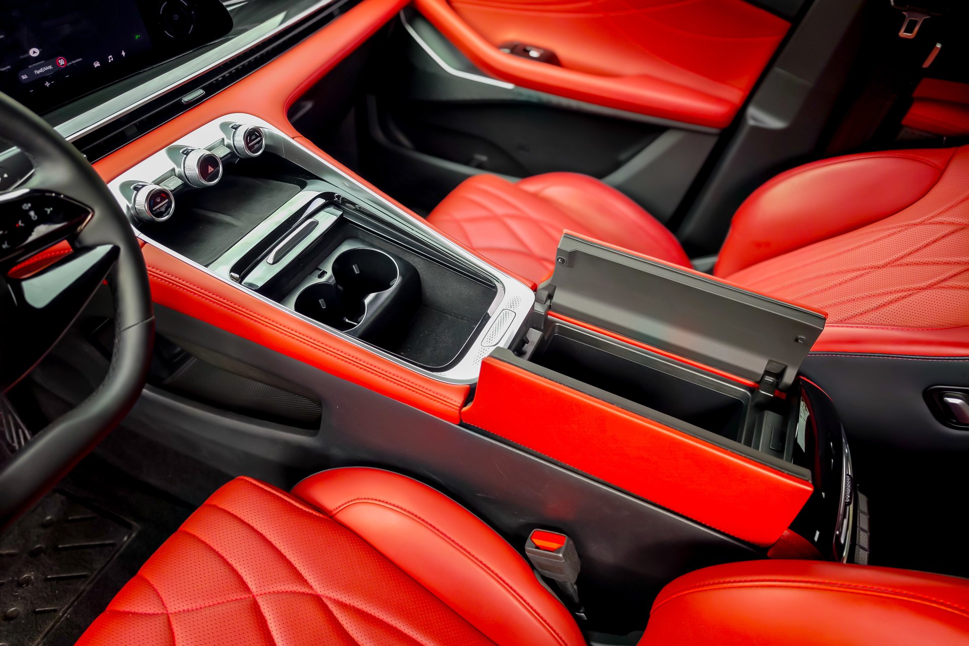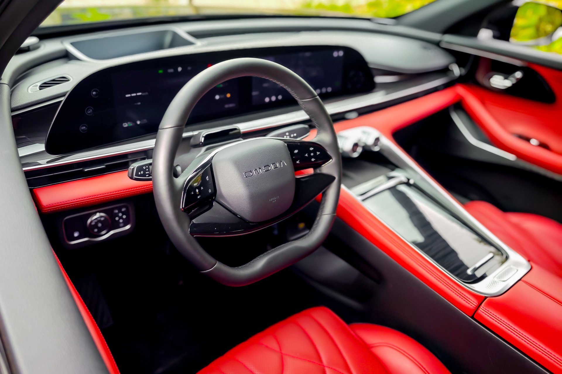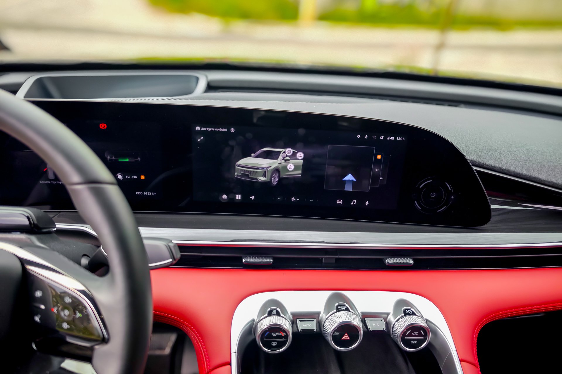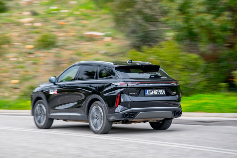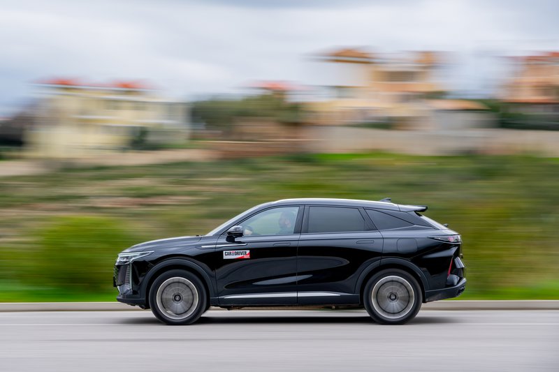 Στον δρόμο, το βάρος του Omoda 9 γίνεται αισθητό, όχι σε ότι αφορά τις επιδόσεις, αλλά στο πώς συμπεριφέρεται. Σε επαρχιακή διαδρομή, οι κλίσεις του αμαξώματος υπάρχουν και η πίσω ανάρτηση δείχνει μια ήπια τάση βύθισης όταν ανεβαίνει ο ρυθμός. Το τιμόνι είναι ακριβές, αλλά δεν προσφέρει ιδιαίτερη πληροφόρηση. Η γενική αίσθηση είναι ουδέτερη, χωρίς να ενθαρρύνει σπορ οδήγηση, κάτι αναμενόμενο βέβαια από ένα αυτοκίνητο που έλκει την καταγωγή του από την Κίνα και είναι προσανατολισμένο στην αποδοτικότητα. Στον αυτοκινητόδρομο όμως, το ίδιο βάρος λειτουργεί υπέρ της σταθερότητας. Το Omoda 9 ταξιδεύει ήσυχα, με πολύ καλή ηχομόνωση και αίσθηση στιβαρότητας. Εκεί δείχνει πιο κοντά στον χαρακτήρα που του ταιριάζει.