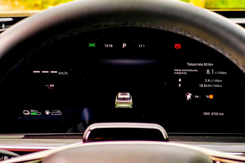Η μπαταρία των 34,46 kWh είναι από τις μεγαλύτερες σε plug-in hybrid μοντέλο. Η ηλεκτρική αυτονομία φτάνει έως 145 km κατά WLTP και η συνδυασμένη αυτονομία μπορεί να αγγίξει τα 1.100 km, χάρη και στο ρεζερβουάρ των 70 L. Υποστηρίζεται φόρτιση AC 6,6 kW και DC 65 kW. Σε ό,τι αφορά το πόσο εν τέλει καταναλώνει, σε ταξίδι με σταθερή ταχύτητα, η κατανάλωση κυμαίνεται μεταξύ 6,5 και 7,0 L/100 km. Αν πιεστεί το υβριδικό σύστημα ισχύος, οι τιμές ξεπερνούν τα 8,0 L/100 km, κάτι λογικό για SUV 2.717 kg και 537 PS. Στην πόλη, με φορτισμένη μπαταρία, μπορεί να κινηθεί για σημαντική απόσταση αμιγώς ηλεκτρικά, μειώνοντας ουσιαστικά την κατανάλωση καυσίμου.