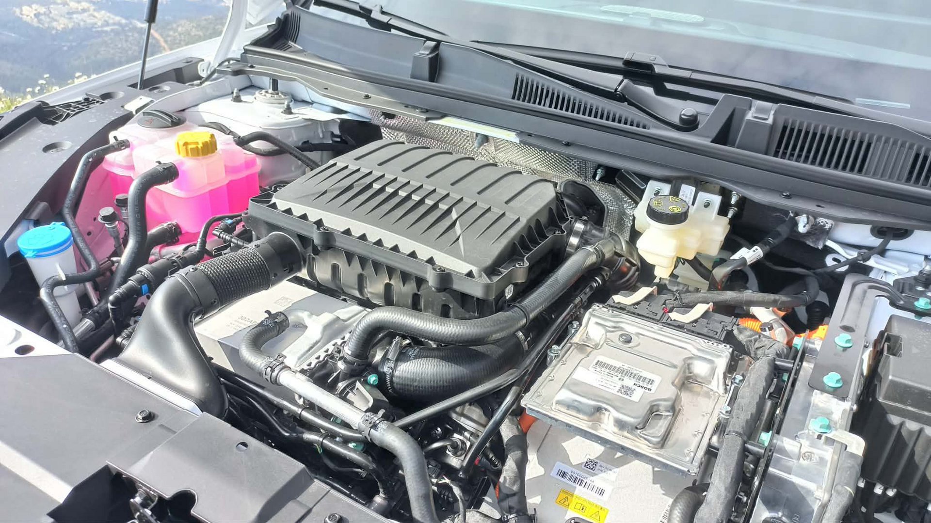 Ο κινητήρας λειτουργεί σε συνδυασμό με ένα κιβώτιο μονής σχέσης DHT (η εταιρία το ονομάζει Dedicates Hybrid Transmission) με 98,5% απόδοση στους τροχούς, δύο ηλεκτροκινητήρες, ο ένας κίνησης με 204 PS ισχύος και 310 Nm ροπής, ο δεύερος μίζα/δυναμό και συνάμα μπουστάρει το σύστημα, ισχύος 136 PS, τροφοδοτούμενους από μια μπαταρία υψηλής απόδοσης 1.8 kWh ιόντων λιθίου.